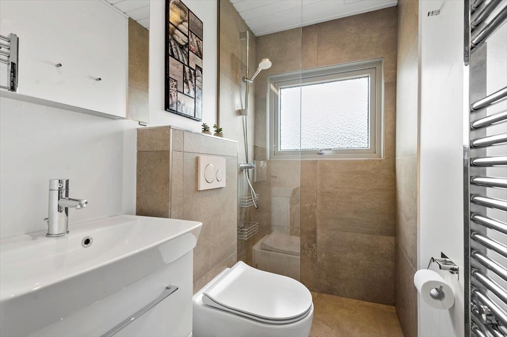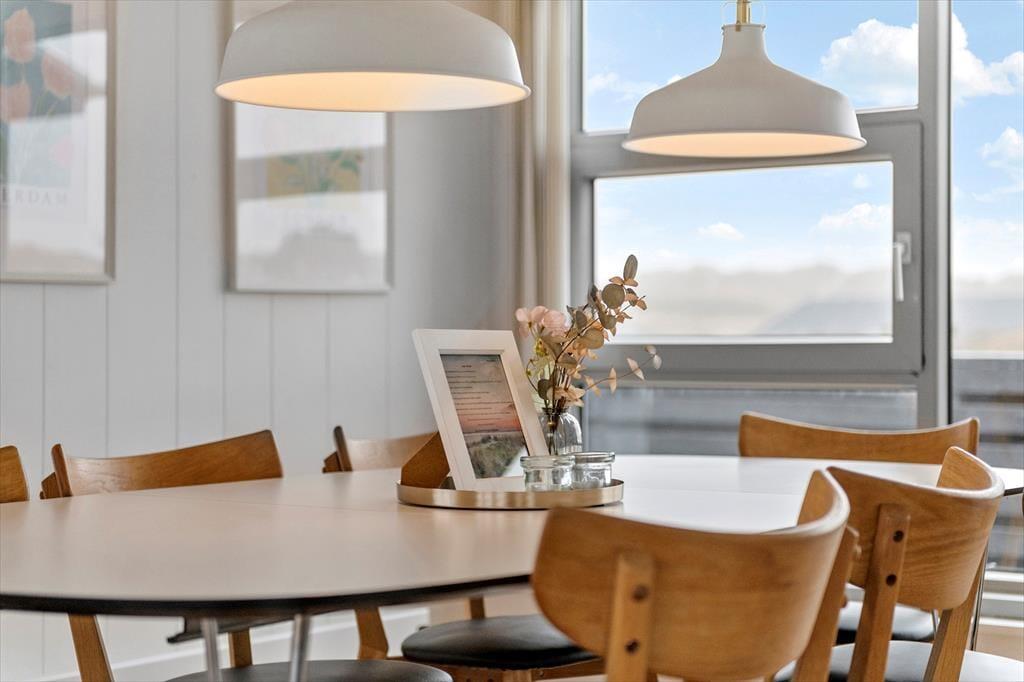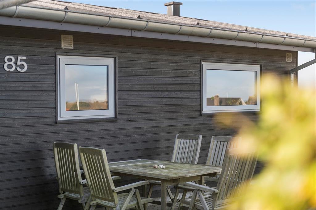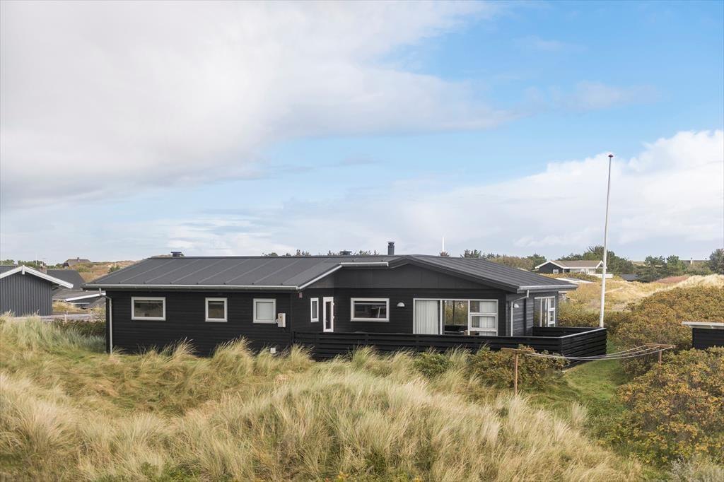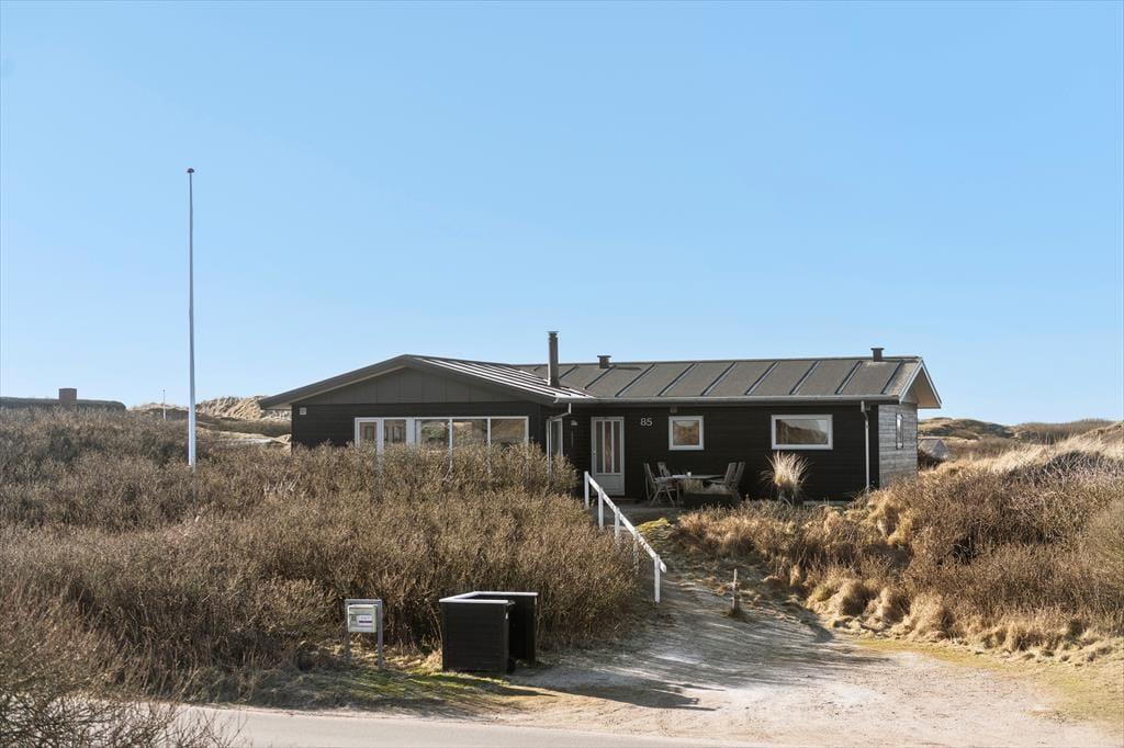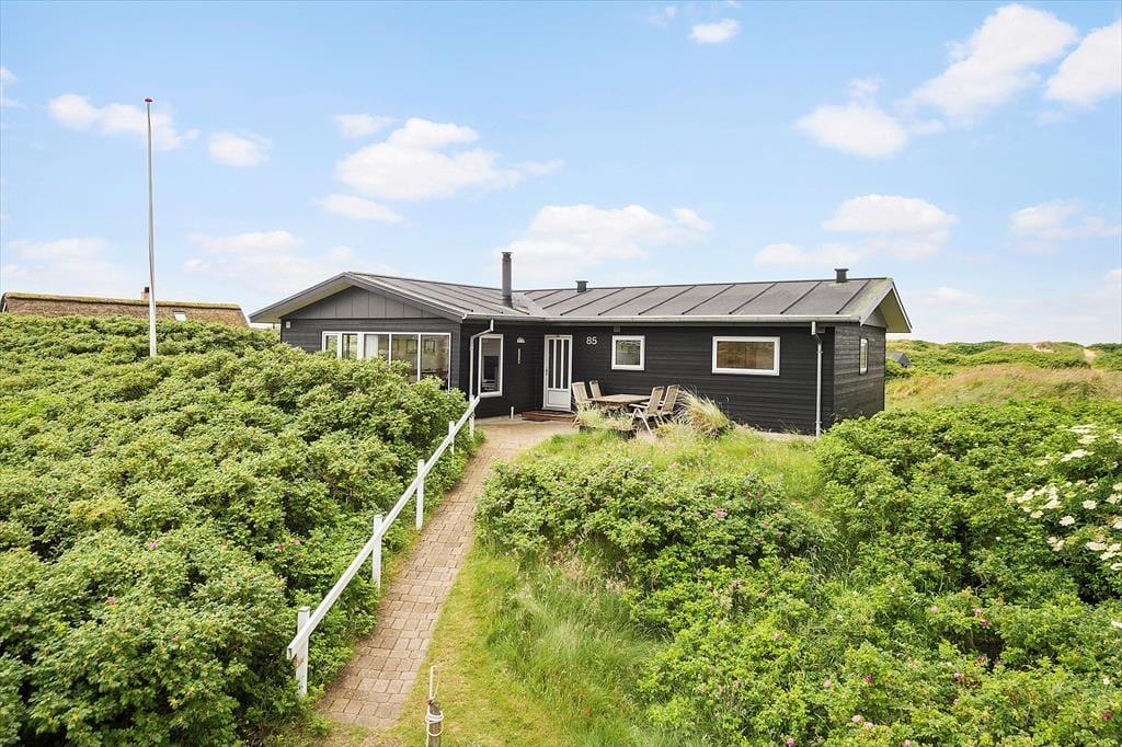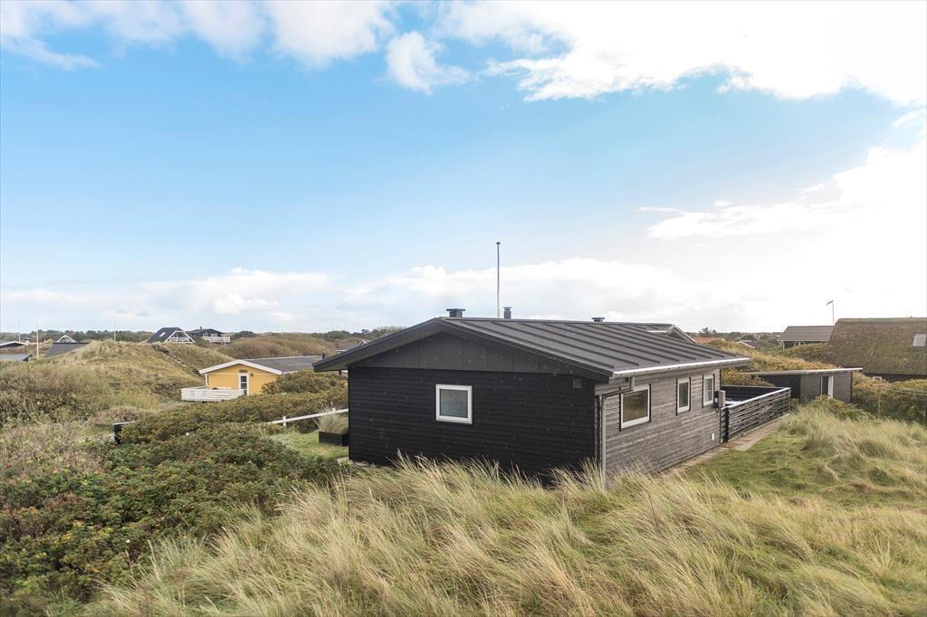 Vom Parkplatz auf dem Naturgrundstück kannst du einem Pfad zum Ferienhaus und zur offenen gefliesten Terrasse folgen, die nach Nordosten ausgerichtet ist. Hier ist es herrlich, aber wahrscheinlich wird dein bevorzugter Aufenthaltsort die große, völlig abgeschlossene Holzterrasse sein, die nach Südwesten liegt und einen schönen Blick auf die Dünen und den beeindruckenden Abendhimmel bietet. Wenn die Sonne sich darauf vorbereitet unterzugehen und die Landschaft in eine goldene Farbpalette taucht, ist es herrlich, hier über einem leckeren Essen oder mit etwas Gutem im Glas zu sitzen, es sei denn, du ziehst es vor, einen Picknickkorb zu packen und den Abendkaffee mit zum Rindby Strand zu nehmen.
