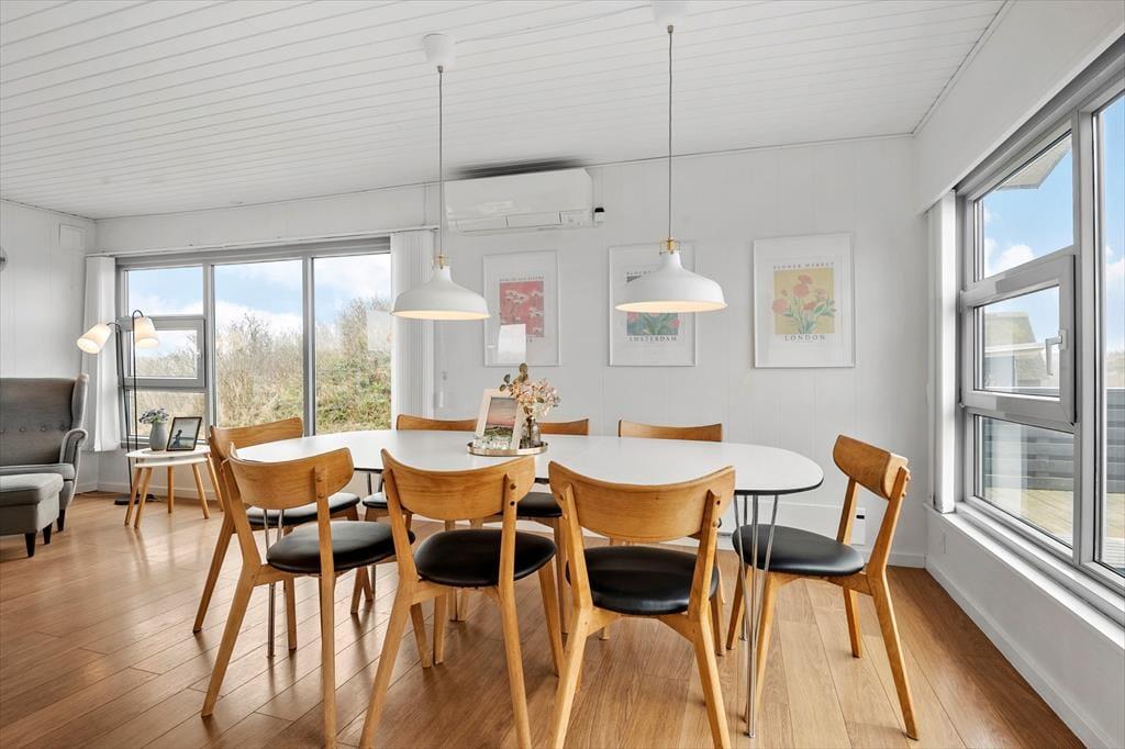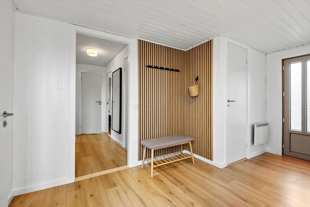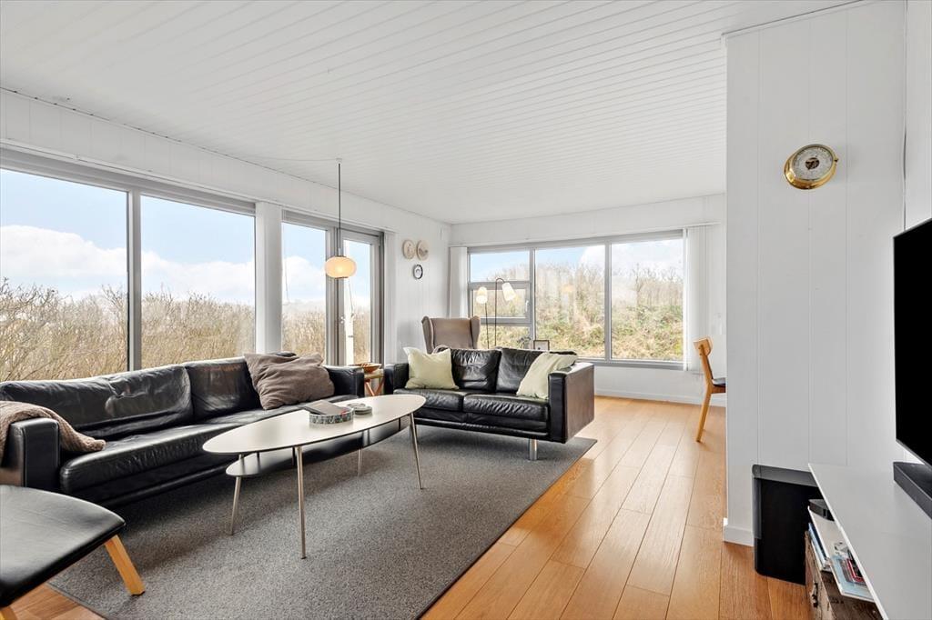 Wenn du von einem richtigen Strandurlaub voller Badetage, wunderschöner Sonnenuntergänge und Spielen im Sand träumst, solltest du dir dieses schöne Ferienhaus unbedingt näher ansehen. Es liegt nur 200 Meter vom Rindby Strand entfernt, sodass du nach wenigen Minuten zu Fuß am Wasser stehst – außer du genießt gerade das süße Nichtstun im Wohnzimmer oder auf dem idyllischen Dünengrundstück.