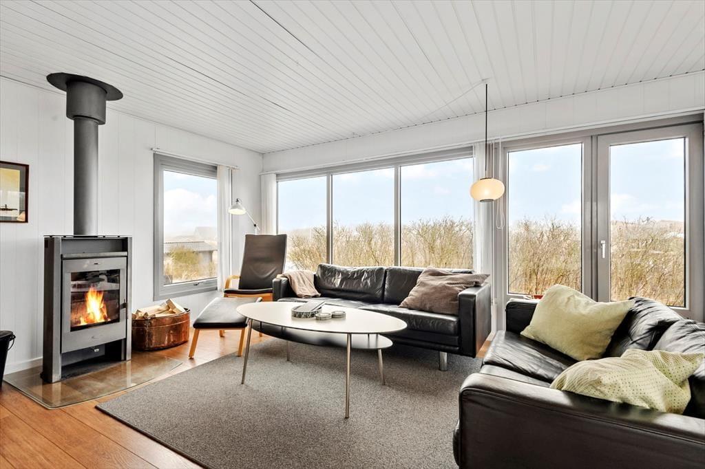 Das Ferienhaus ist sehr ansprechend eingerichtet, doch sobald du das Wohnzimmer betrittst, wirst du vermutlich vom Anblick der natürlichen Umgebung fasziniert sein. Durch die großen Glasfronten hast du einen wunderbaren Blick auf die schöne Dünenlandschaft draußen, und die Sonne kann den Raum morgens, mittags und abends mit Licht durchfluten. Mit dem gemütlichen Kaminofen und der einladenden Einrichtung ist das Wohnzimmer der ideale Ort zum Entspannen. Am Esstisch können alle Mahlzeiten genossen werden, die in der gut ausgestatteten Küche direkt nebenan zubereitet werden. Es gibt vier Schlafzimmer und dank des durchdachten Grundrisses auch zwei Badezimmer.