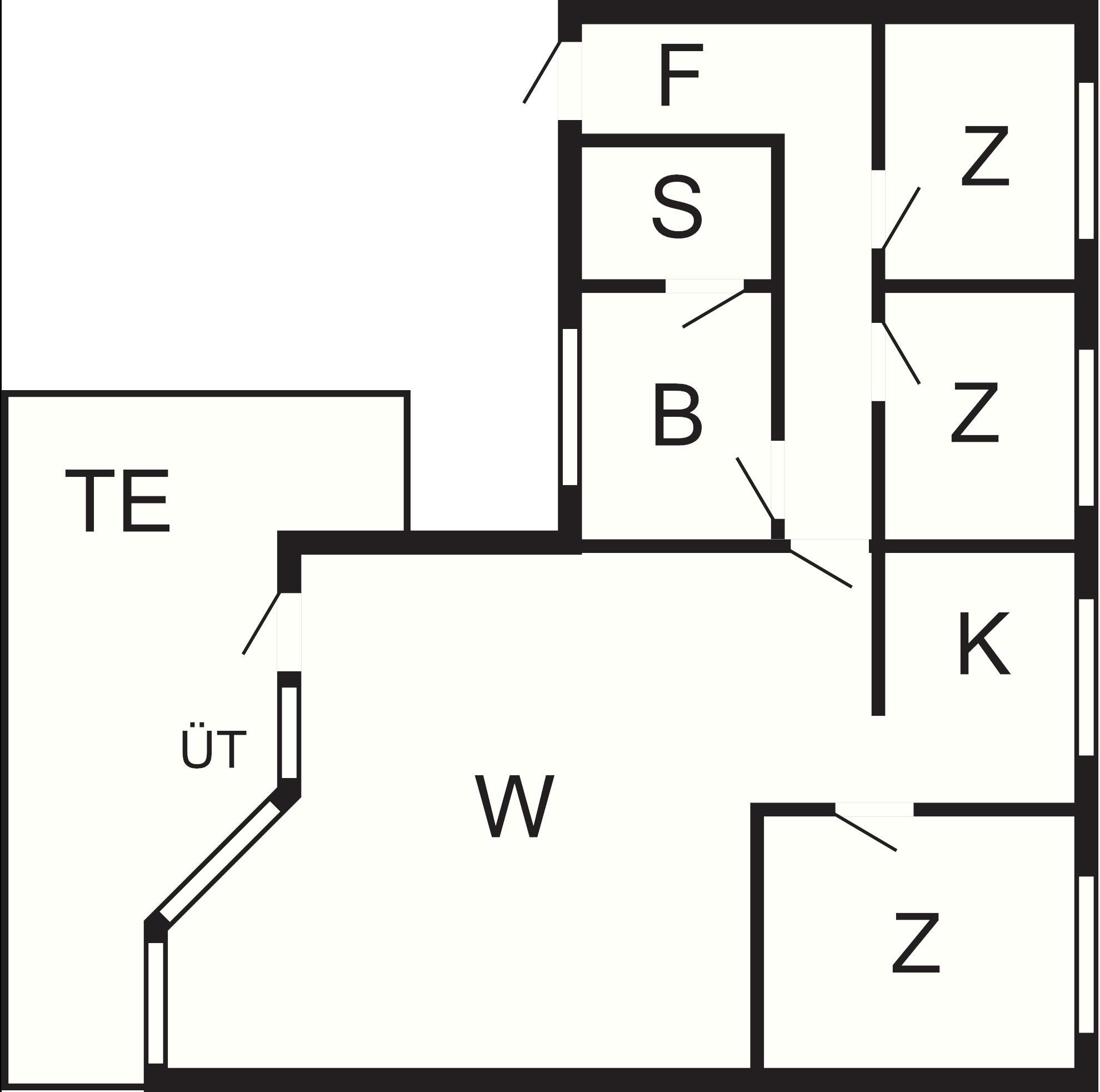 Off. Küche: E-Herd, Kühlschr. m. Gefrierfach, Mikrow., Abzugsh., Kaffeem., Spülm., Waschm.