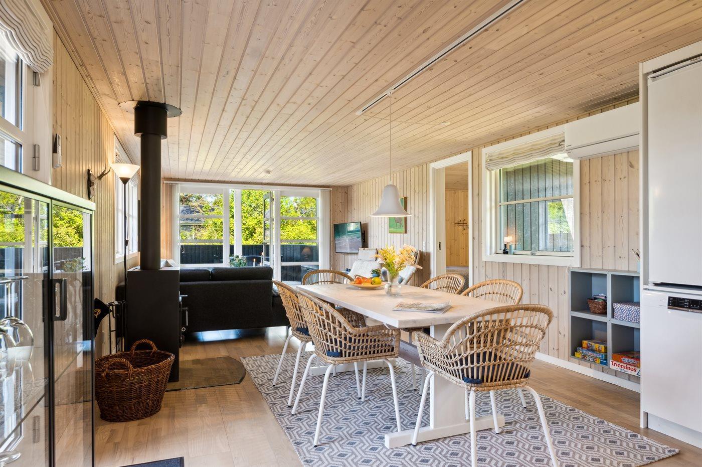 Das Ferienhaus eignet sich für 6 Personen sowie 1 Kleinkind bis zu 3 Jahren. Die Ferienunterkunft hat eine Wohnfläche von 90 m² und wurde 1987 gebaut. 2020 wurde die Ferienunterkunft renoviert. Haustiere dürfen nicht mitgebracht werden. In der Ferienunterkunft ist eine energiesparender Luft zu Luft Wärmepumpe installiert. Die Ferienunterkunft ist mit Waschmaschine ausgestattet. Wäschetrockner. Tiefkühlmöglichkeit mit 20 Liter Nutzinhalt. Es gibt außerdem einen Kaminofen. Für die jüngsten Feriengäste ist 1 Kinderhochstuhl vorhanden.