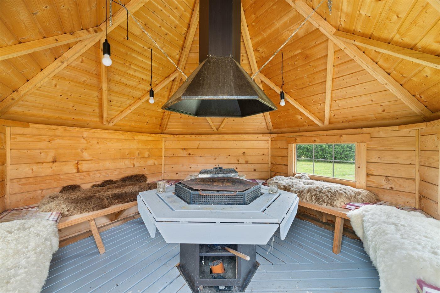 Herrlicher südwestlich ausgerichteter Terrassenbereich und hinter dem Haus eine äußerst gemütliche norwegische Grillhütte, in der man sowohl grillen als auch entspannen kann!