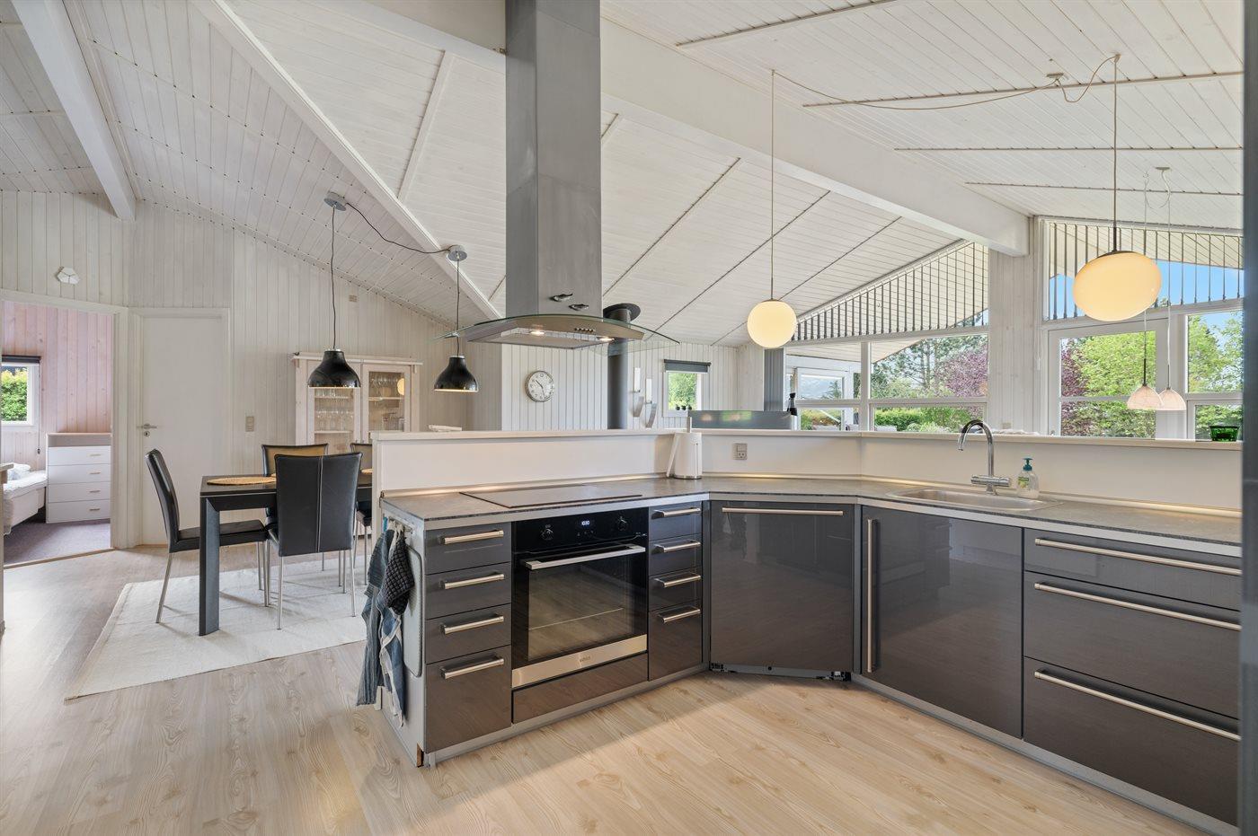Die Küche ist mit Kühlschrank ausgestattet. Außerdem gibt es 4 Induktions-Kochzonen, Umluftofen sowie Geschirrspüler.