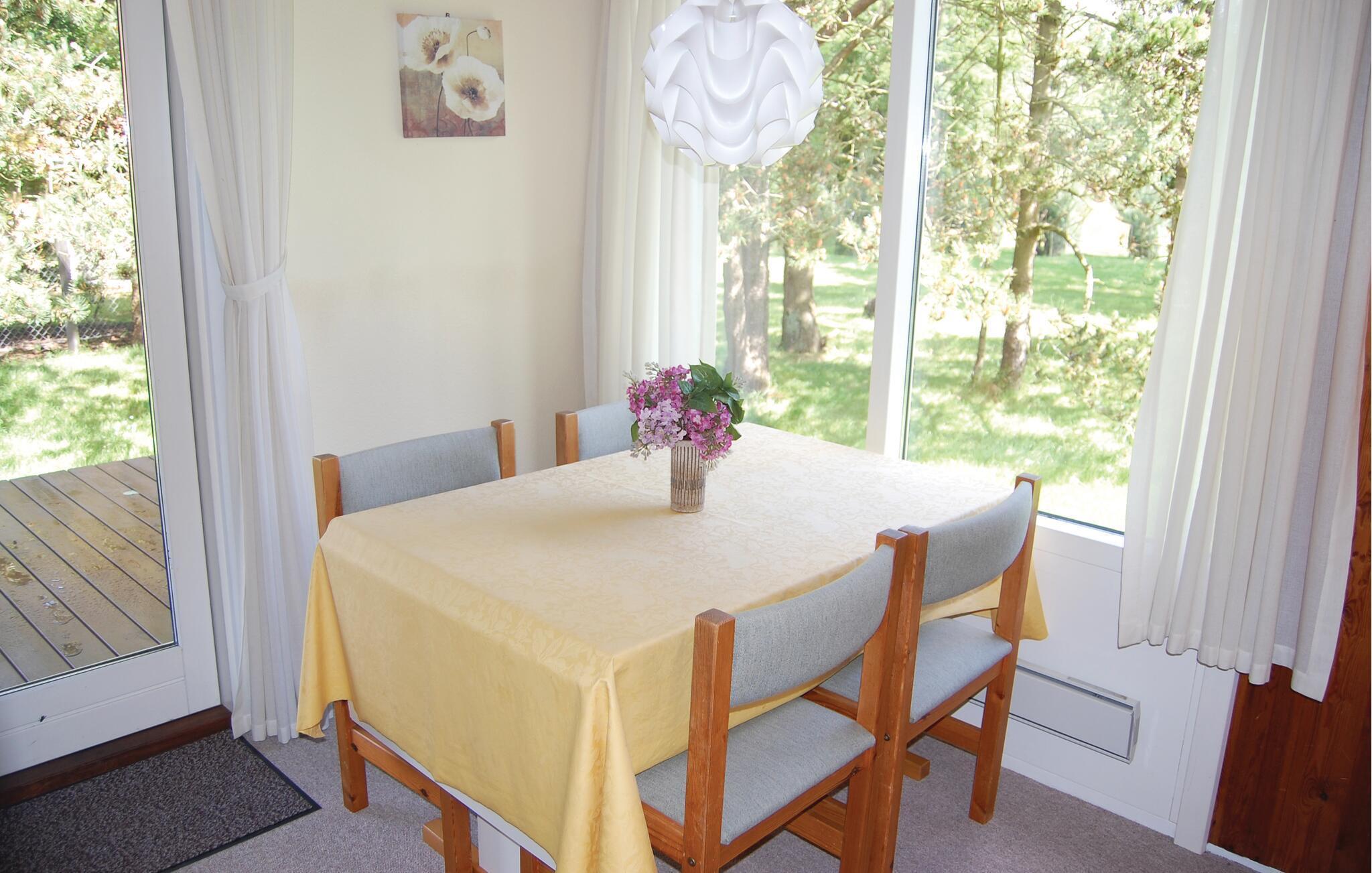 Willkommen in Ihrem Ferienhaus in Ristinge, das Ihnen die Grundlage für einen ruhigen und familienfreundlichen Urlaub bietet. Im Inneren des Hauses erwartet Sie eine einfache, aber funktionale Ausstattung. Das Wohnzimmer ist mit Holzverkleidung gestaltet und bietet gemütliche Sitzgelegenheiten, die zu entspannten Stunden einladen. Nutzen Sie die kompakte Küche, um kleine Gerichte zuzubereiten, und genießen Sie diese am einladenden Esstisch mit Blick auf das Grün vor den Fenstern.