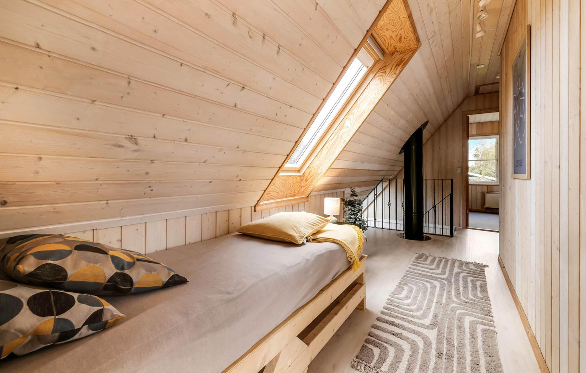 Das Haus erstreckt sich über zwei Ebenen und bietet 5 Schlafzimmer, von denen drei Doppelbetten und zwei Einzelbetten haben. Insgesamt gibt es Platz für 10 Personen, sodass Sie bequem einen Urlaub mit Freunden oder Familie verbringen können. In der Wintersaison ist es toll, sich in der Sauna des Hauses aufzuwärmen. Die Küche ist mit allem ausgestattet, was Sie brauchen, und das große Wohnzimmer bietet eine gemütliche Atmosphäre für entspannte Abende mit der ganzen Familie.