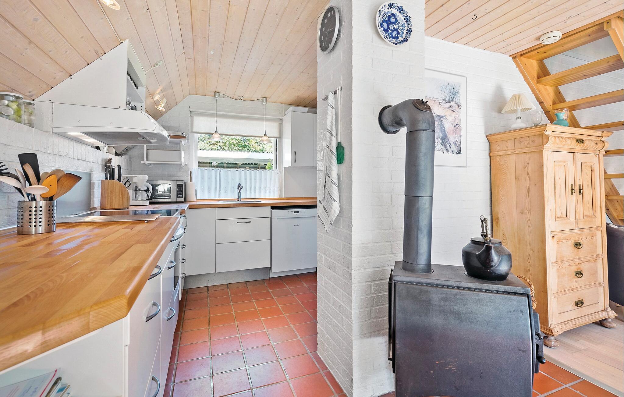 Das Ferienhaus ist 91 m² groß, davon entfallen 16 m² auf den beheizten Annex, und liegt in der Ferienhaussiedlung Ristinge. Das Haus ist hell und freundlich eingerichtet, mit Teppichböden in beiden Schlafzimmern im 1. Stock, im Rest des Hauses und dem Anbau gibt es keine Teppichböden.