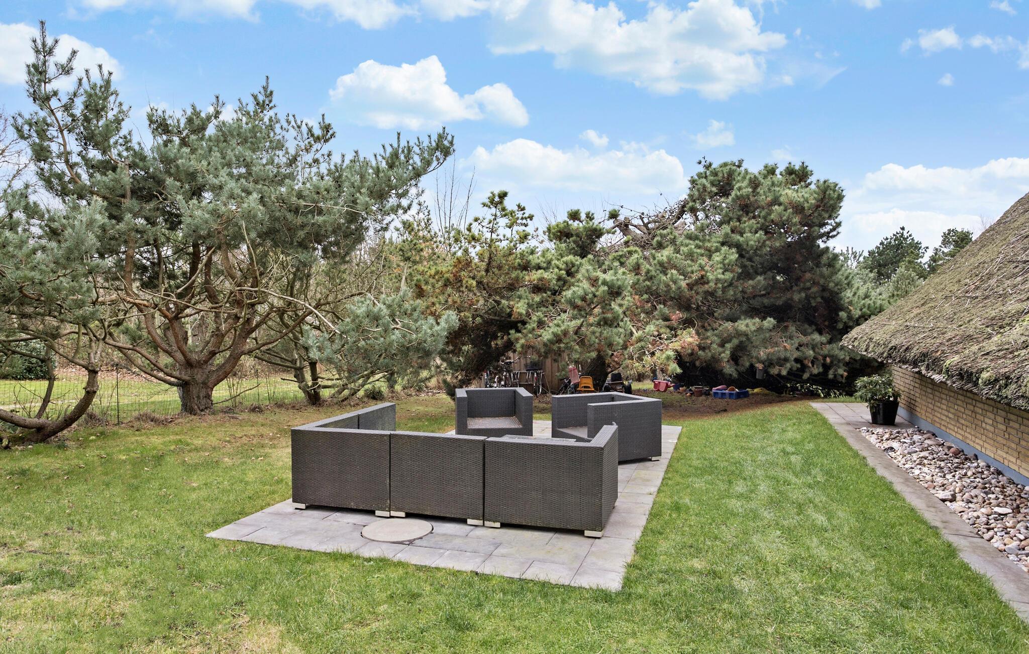 Gemütliches reetgedecktes Ferienhaus in Ristinge mit Meerblick, großem Garten und moderner Ausstattung auf Langeland.