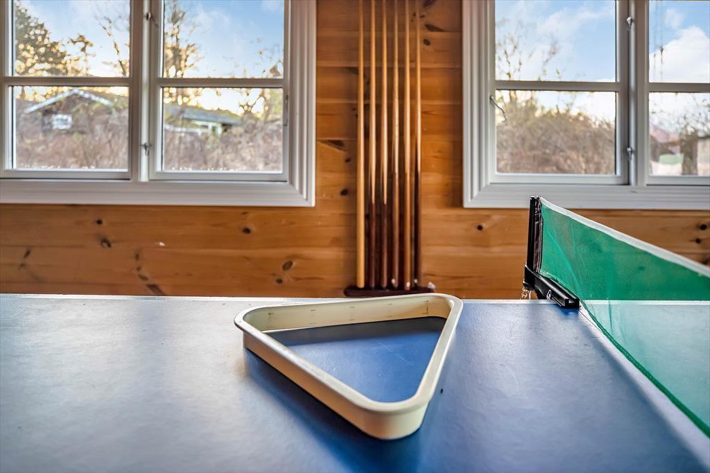 Wir betreten das Haupthaus und erkennen sofort, dass dies etwas Besonderes ist: ein Blockhaus, geschmackvoll eingerichtet, mit großen Fliesen auf dem Boden, einer großen offenen Küche, die an das Wohnzimmer und den Essbereich angrenzt. Überall hat man einen schönen Blick auf den Roskilde Fjord und die Brücke der Kronprinzessin Mary. mit Frederikssund im Hintergrund. Felder und Wiesen mit vielen Wildtieren direkt vor den Fenstern. Machen Sie es sich mit einem Glas Wein vor dem gemütlichen Holzofen gemütlich und beobachten Sie diese herrliche Szene. Das Haus verfügt über zwei Bäder und zwei Schlafzimmer; in einem davon wachen Sie mit dieser herrlichen Aussicht auf, so dass Sie am liebsten noch ein bisschen länger wach bleiben und die Aussicht genießen möchten. Das Nebengebäude ist ebenfalls ein Blockhaus im gleichen schönen Stil wie das Haupthaus und verfügt über ein Schlafzimmer mit Aussicht, ein Badezimmer und eine kleine Küchenzeile. Zusätzlich zu diesen schönen Bedingungen gibt es einen großen gemeinsamen Aktivitätsraum mit Billard und Tischtennis, so dass es ein großartiger Ort für einen Wettbewerb ist, um zu sehen, wer diese sportlichen Herausforderungen meistern kann.