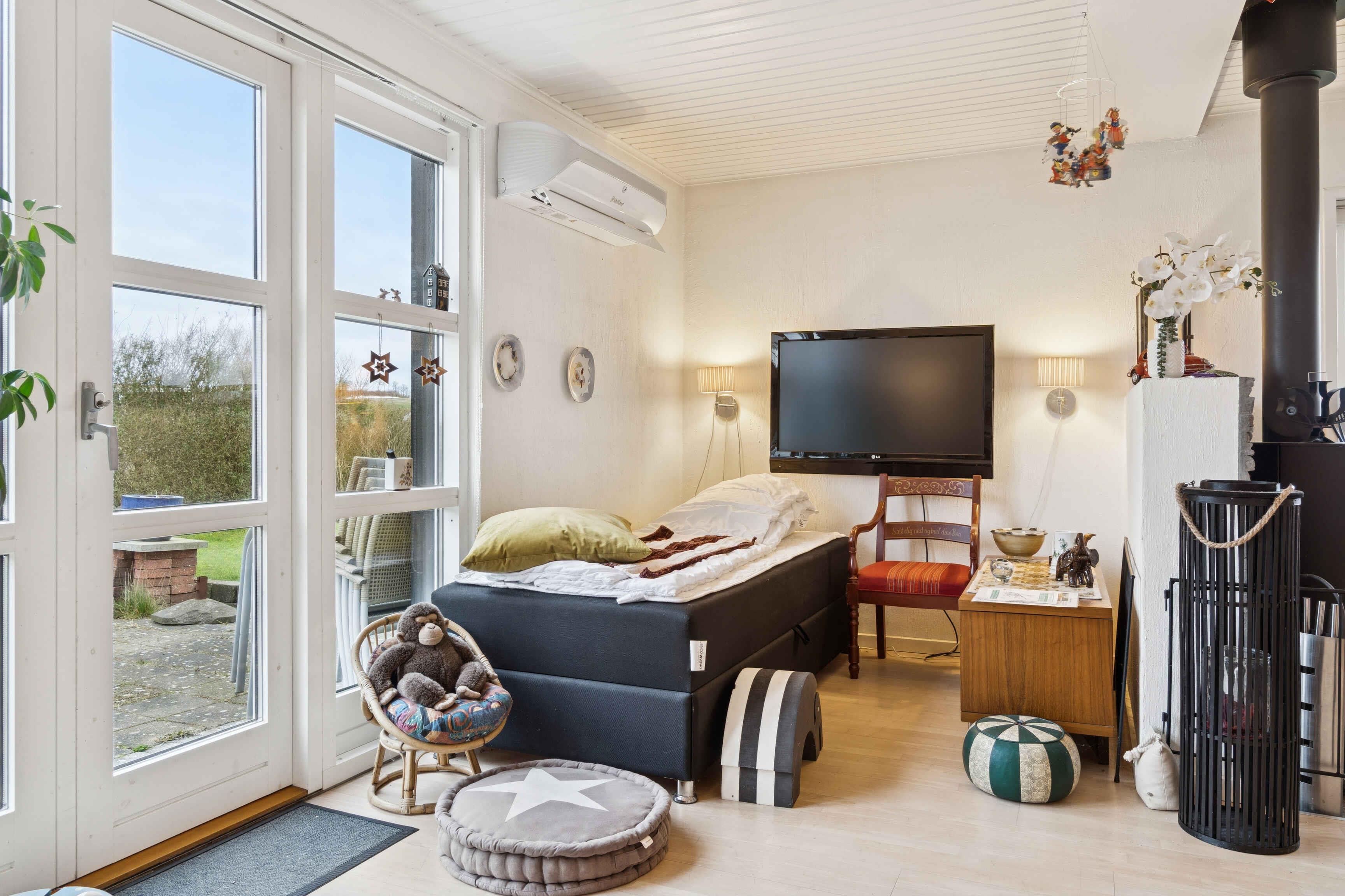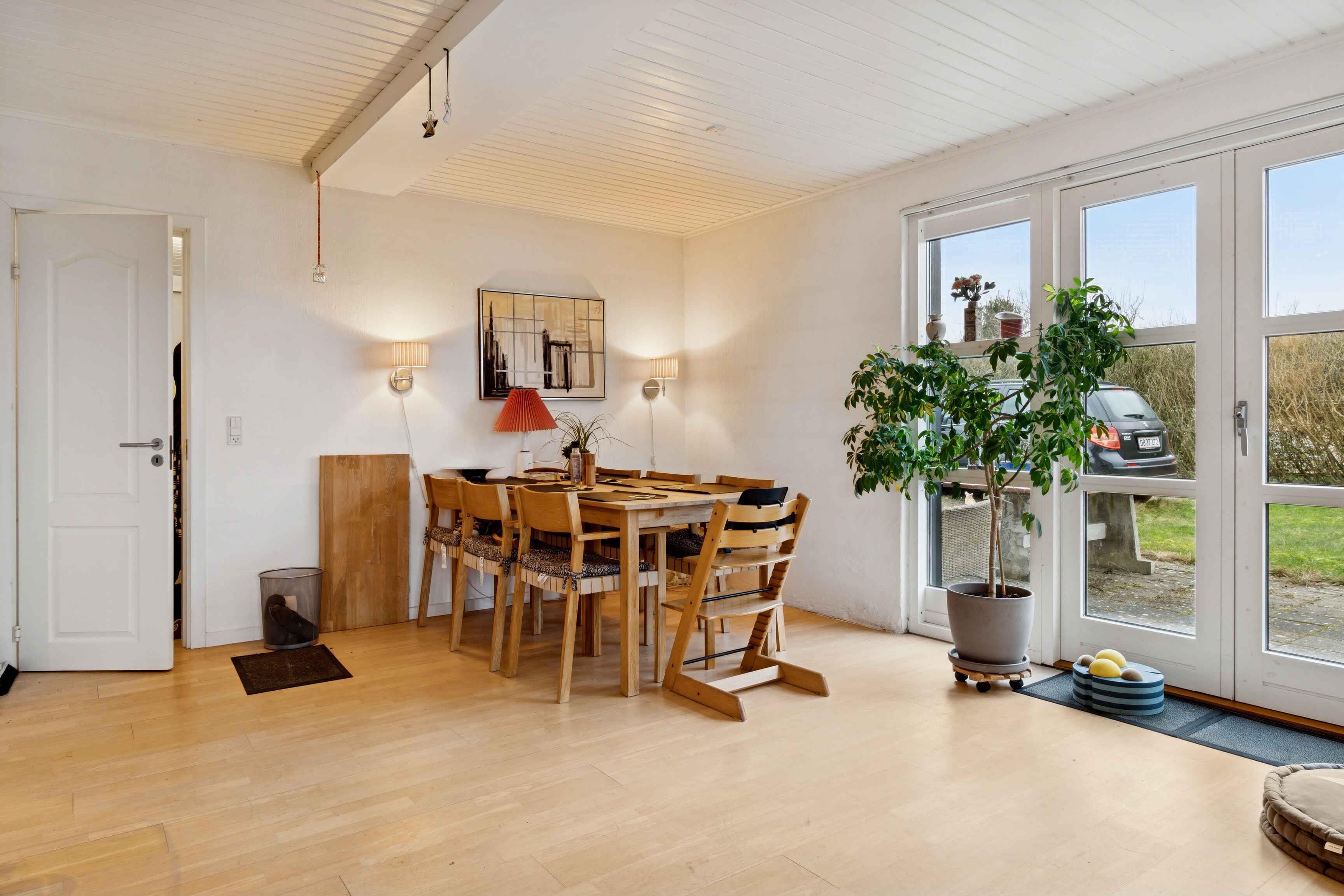 Dieses gemütliche Ferienhaus mit 77 m² liegt in ruhiger Umgebung und eignet sich ideal für Erholungssuchende. Das Haus verfügt über 2 Schlafzimmer mit insgesamt 4 Schlafplätzen und ist perfekt für Paare oder kleine Familien. Die Einrichtung ist funktional und einladend. Vom Haus aus genießen Sie den Blick in die Umgebung, und der eingezäunte Garten bietet sichere Rahmenbedingungen für Kinder und Erwachsene. Der Außenbereich lädt zu entspannten Stunden ein. Der Garten eignet sich für Mahlzeiten im Freien, Ruhe und Erholung fernab des Alltags. Der Strand ist nur 300 m entfernt und lädt zu spontanen Badeausflügen und Spaziergängen ein. Ein nahegelegener Badestrand bietet gute Möglichkeiten für Erholung und Spiel. Die Umgebung bietet attraktive Urlaubserlebnisse. Die Natur ist nah, und bekannte Ausflugsziele wie Jesperhus und weitere Sehenswürdigkeiten sind gut erreichbar.