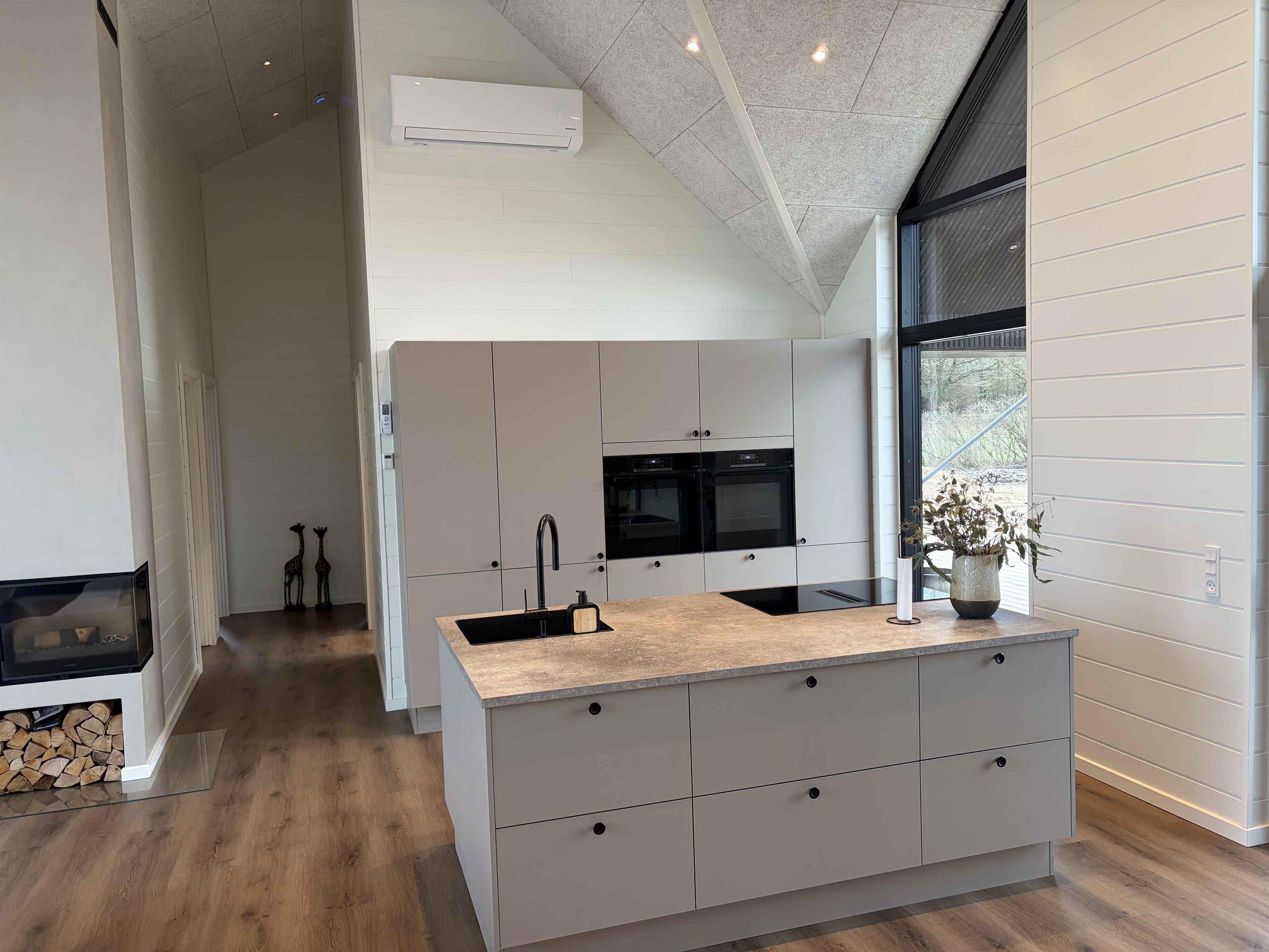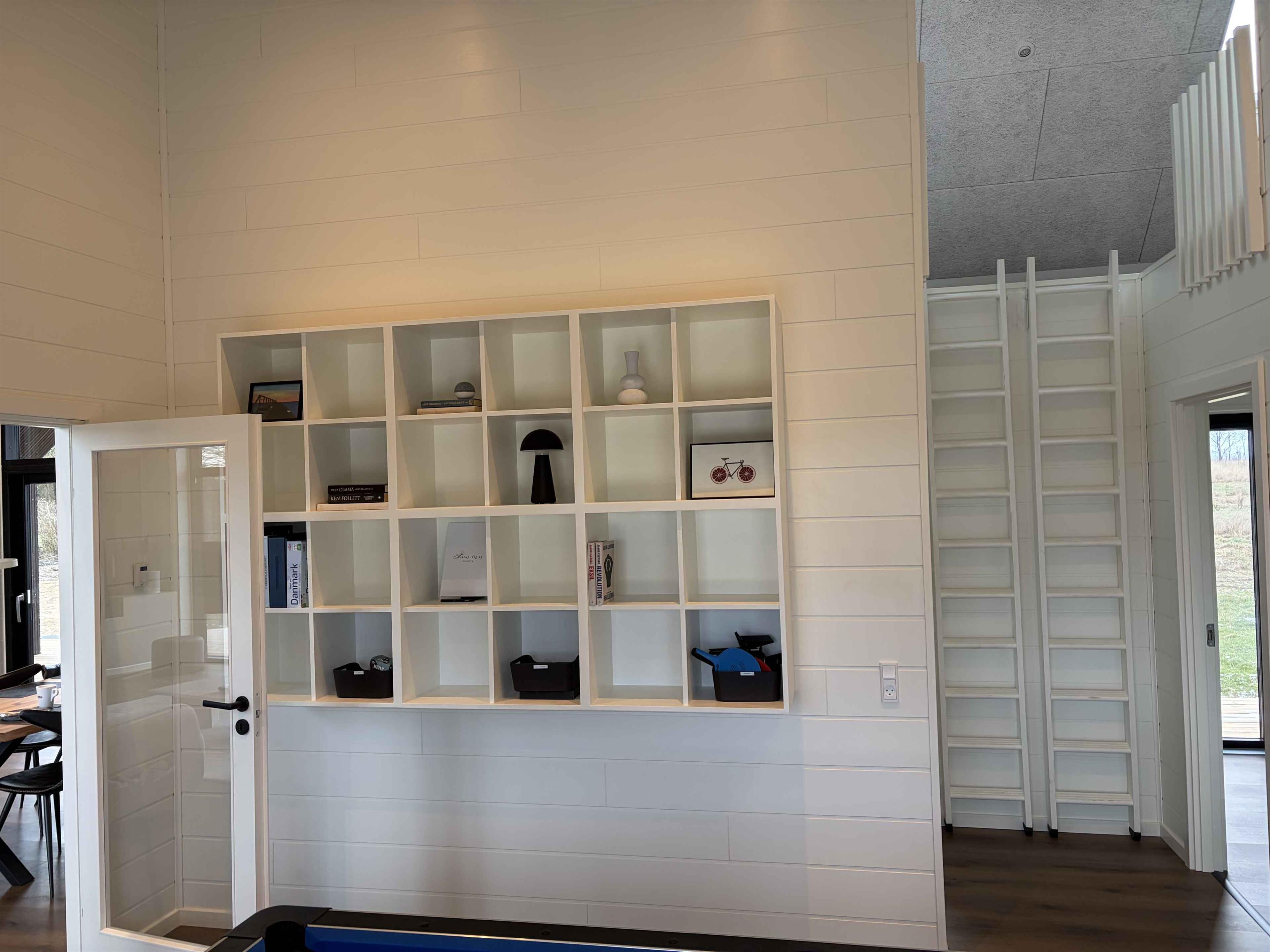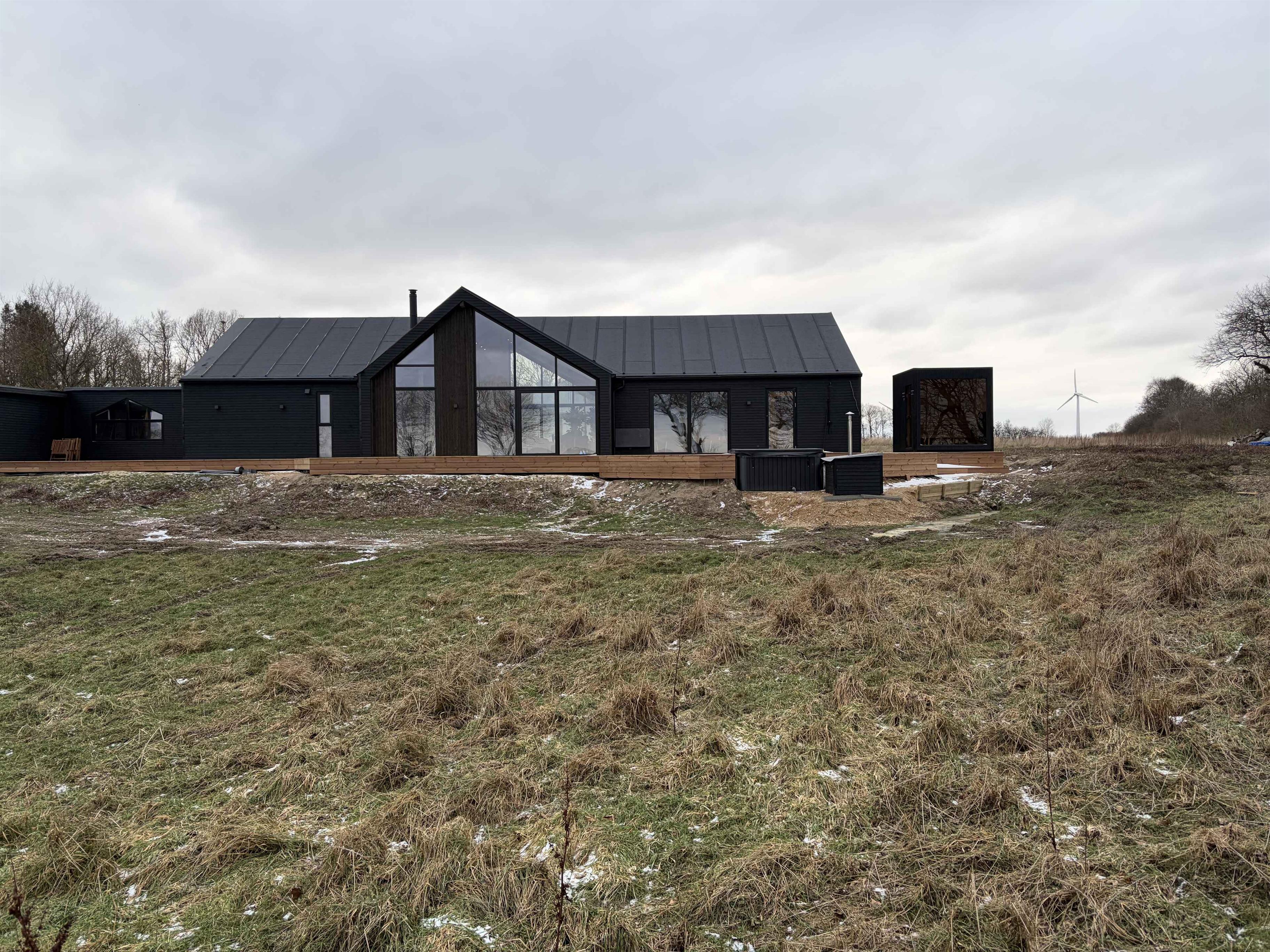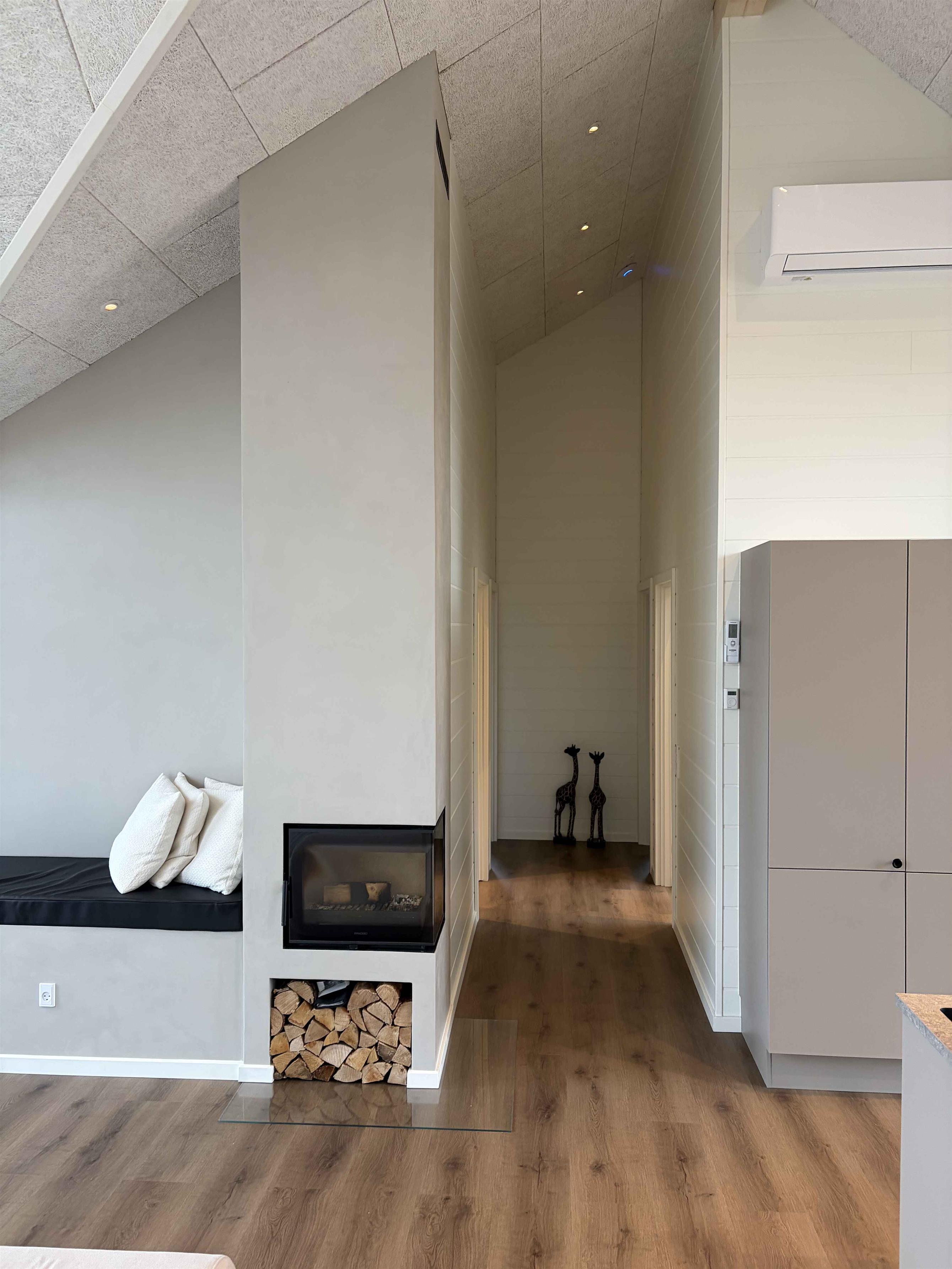 Das Ferienhaus liegt in ruhiger Umgebung, wo Rehe und anderes Wild direkt vor den Fenstern vorbeiziehen. Es befindet sich nahe Sallings bestem Badestrand mit Restaurant und Eiskiosk. In der Umgebung gibt es viele Wanderwege durch Wald und entlang des Limfjords sowie einen Badesteg. Das Haus liegt in der Nähe von Jeppe Aakjærs Künstlerhaus und Museum, das als nächster Nachbar sichtbar ist. Das Haus hat 165 m² und verfügt über einen Eingangsbereich, zwei Schlafzimmer mit Doppelbetten und ein Bad mit Einbauarmaturen und großer Dusche. Großes Wohnküchenbereich mit moderner Ausstattung und Essplatz für 8 Personen. Draußen gibt es eine überdachte Terrasse mit großem Dachfenster, einen Morsø-Holzpizzaofen und einen Weber-Holzkohlegrill. Wohnzimmer mit großer Couch und eingebautem Kaminofen. Aktivitätsraum mit Spielen, neuem Billard-/Tischtennistisch und Dart. Zwei weitere Schlafzimmer mit Doppelbetten und Galerie sowie zweites Bad mit Waschmaschine und Trockner. 300 m² Holzterrasse mit Außendusche (warm/kalt), eingelassenem Whirlpool für 8 Personen und elektrisch beheizter Sauna mit Blick auf den Limfjord.