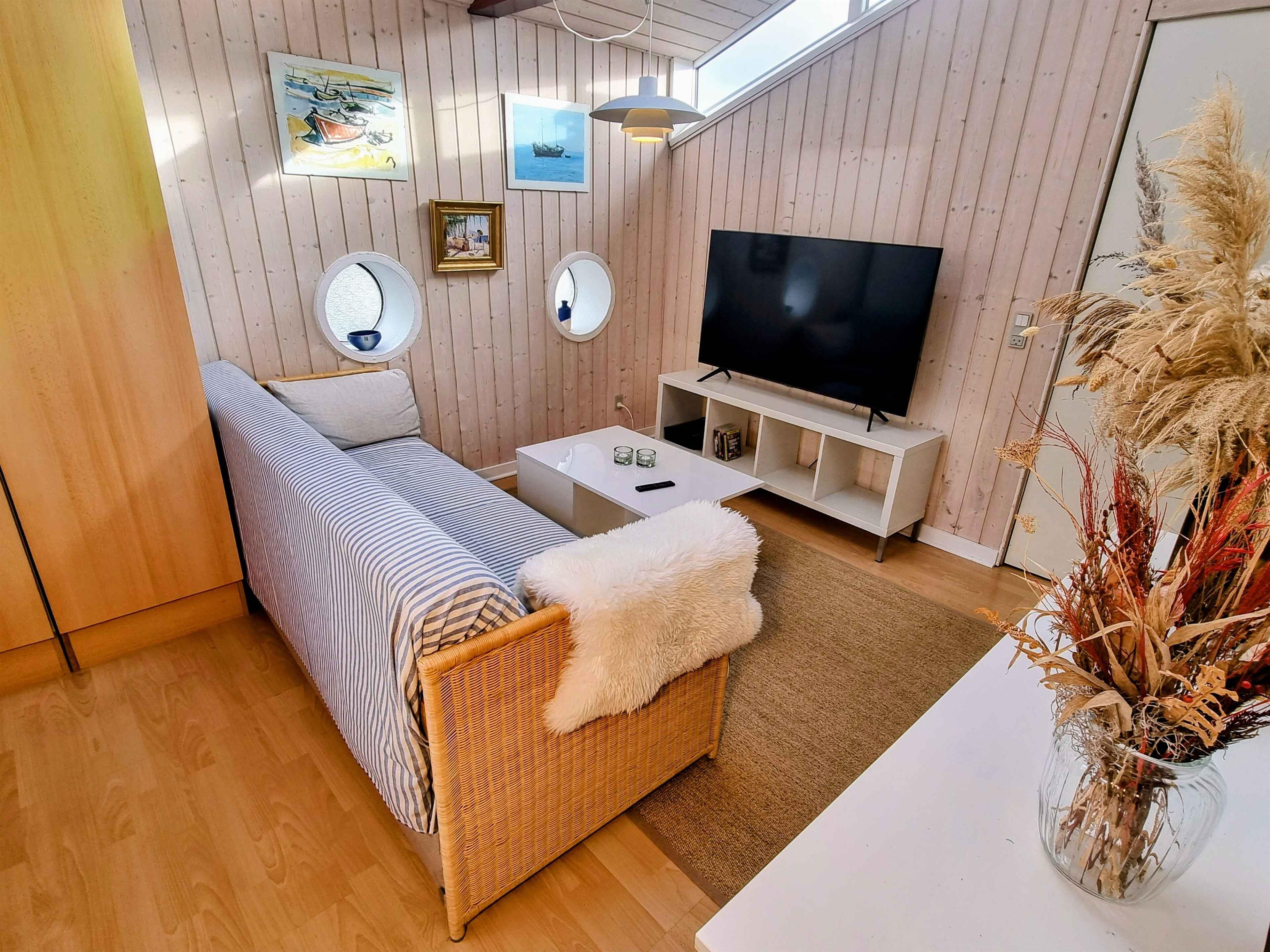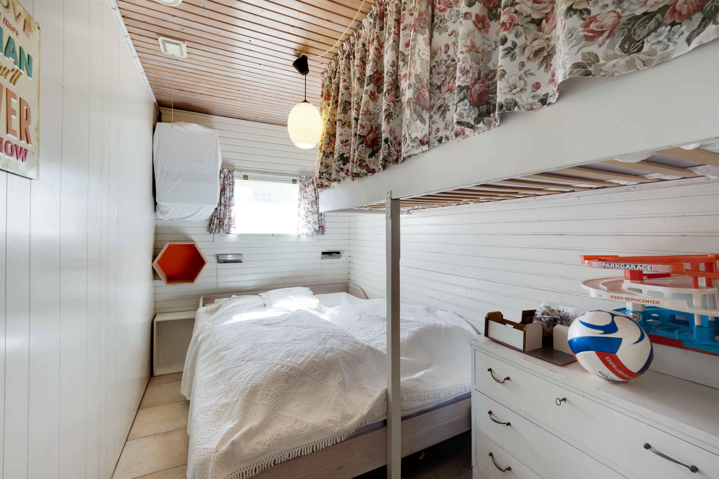 Die Quadratmeter des Hauses sind gut aufgeteilt, und im Inneren finden Sie zwei schöne Schlafzimmer, ein Loft mit 2 Schlafplätzen, ein geräumiges Badezimmer und ein Wohnzimmer. Allerdings ist das Haus nur für 6 Personen geeignet. In der großen Wohnküche kann sich die Familie nach dem Bad zum Abendessen oder nach Winterspaziergängen zum Kakao vor dem Holzofen treffen. Die offene, helle HTH-Küche hat alles, was man sich wünschen kann. Angrenzend an die Wohnküche befindet sich ein schönes Wohnzimmer mit Panoramablick. Der schöne Wintergarten ermöglicht es Ihnen, die Sommersaison zu verlängern, und mit seiner südöstlichen Lage bekommt er den ganzen Morgen bis weit in den Nachmittag hinein Sonne ab. Das kleine Nebengebäude wird als Gästezimmer genutzt und hat sowohl Strom als auch Heizung. Vor dem Haus befindet sich eine große Holzterrasse mit viel Platz für die ganze Familie, um zu essen und den Panoramablick zu genießen. In die Terrasse eingebaut befindet sich das große Wildnisbad mit Fiberglaseinsatz, Düse und Licht. Das abenteuerliche Gelände erstreckt sich über mehrere Ebenen, wo die Kinder auf dem weichen Rasen herumtollen und zwischen den Büschen Johannisbeeren finden können, während Sie auf einer der vielen Terrassen ein Glas Wein genießen. Das Haus liegt hoch auf dem Grundstück und bietet einen schönen Blick über die Landschaft und den Fjord. Der landschaftlich reizvolle Eskov Strandpark verfügt über fantastische Gemeinschaftsbereiche, darunter ein schöner Badestrand mit einer Schwimmbrücke, eine überdachte Grillhütte, ein großer Spielplatz, Ballspielplätze, Petanque-Plätze usw. Für mutige, ältere Kinder gibt es sogar Unterstände, in denen man unter freiem Himmel übernachten und über einem Feuer kochen kann. Die Lage ist sehr attraktiv, da sie in der Nähe von Fursund und der Insel Fur liegt, ideal für kurze Tagesausflüge in echter dänischer Landidylle. Das Sommerhaus wird mit einer Wärmepumpe und einem Holzofen beheizt. Achtung: Wird nicht für gewerbliche Nutzung vermietet.