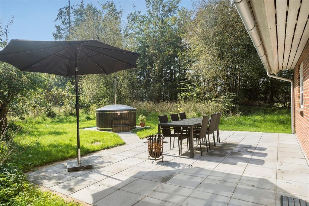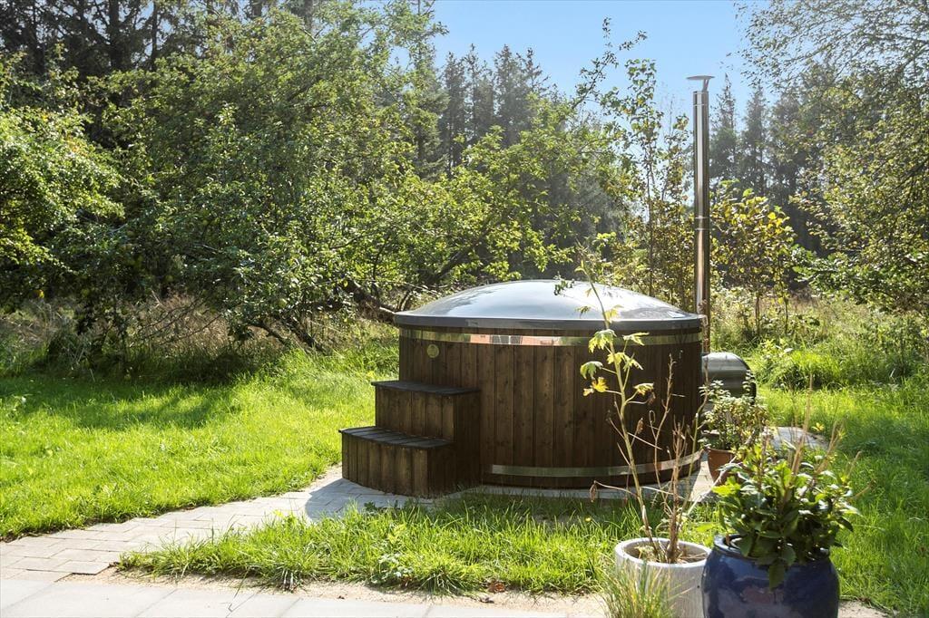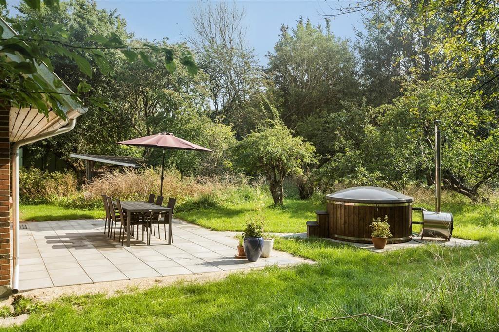 Eine nach Süden ausgerichtete Terrasse liegt direkt vor dem Wohnzimmer, sodass ihr euren Vormittagskaffee oder das Mittagessen ganz einfach in der Sonne genießen könnt. Der Hot Tub auf der Terrasse lädt zur puren Entspannung ein. Ein Sonnenschirm spendet bei Bedarf Schatten, und wenn ihr lange genug sitzen bleibt, könnt ihr den Grill anzünden und den Abend in gemütlicher Atmosphäre fortsetzen. Das Grundstück ist groß und teilweise von Bäumen umgeben. Auf der Rasenfläche haben Kinder und Hunde viel Platz zum Spielen und Herumtollen. Ein begrenzter Bereich wird nicht gemäht, um die Artenvielfalt zu fördern.