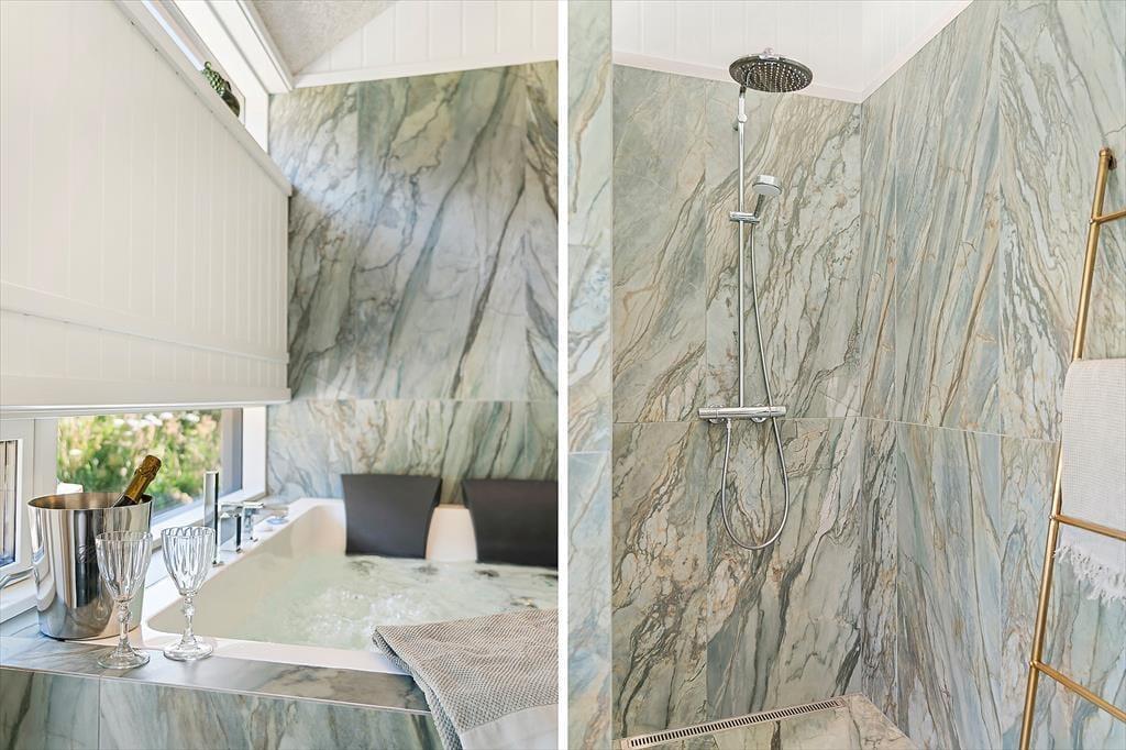 Drei gemütliche Schlafzimmer warten auf Sie. Jedes Zimmer ist mit Bedacht und Komfort eingerichtet. Träumen Sie süß in den weichen Betten und wachen Sie zu Vogelgezwitscher draußen auf. Die stilvollen Badezimmer haben eine Dusche und moderne Annehmlichkeiten. In einem der Badezimmer können Sie auch den Whirlpool zur Entspannung und Wohlbefinden nutzen.