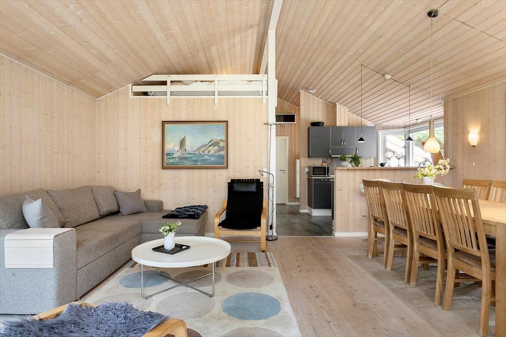Das Ferienhaus ist modern und stilvoll eingerichtet – mit warmen Materialien und viel Licht, das durch die großen Fenster strömt. Der offene Wohnbereich vereint Küche und Wohnzimmer, sodass ihr auch beim Kochen gemeinsam Zeit verbringen könnt. Man kann sich lebhafte Gespräche am Esstisch gut vorstellen, während im Hintergrund der Holzofen knistert und an kühlen Abenden für gemütliche Wärme sorgt. Das Haus verfügt über drei einladende Schlafzimmer sowie einen offenen Schlafboden mit zusätzlichen Schlafplätzen – perfekt für Kinder oder Teenager, die sich eine eigene Kuschelecke wünschen. Beide Badezimmer sind geschmackvoll eingerichtet, wobei das größere mit Spa und Sauna ausgestattet ist – der ultimative Luxus nach einem Tag in der Natur oder am Meer. Alles ist bereitet für einen Urlaub voller Ruhe und gemeinsamer Momente.