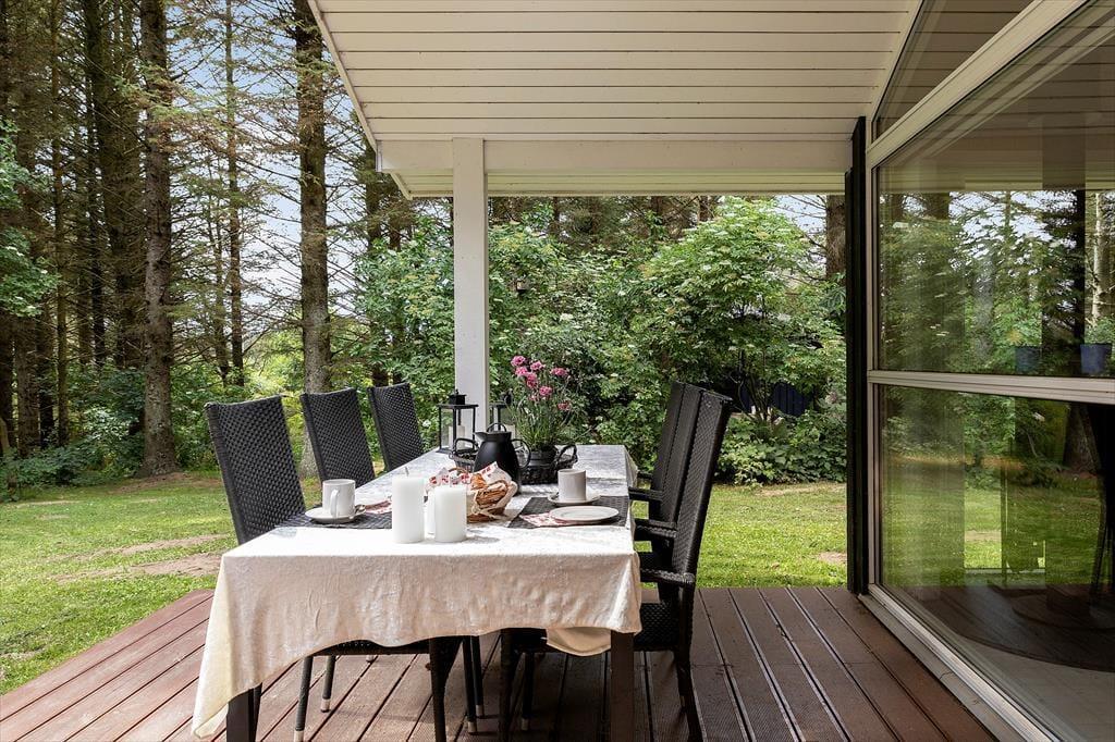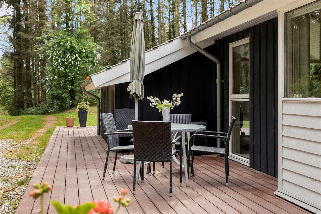 Wenn die Sonne scheint und echte Sommerstimmung herrscht, wird das große Naturgrundstück schnell zum Mittelpunkt des Geschehens. Hier gibt es viel Platz zum Spielen und Toben auf der Wiese, und die Kinder können am gemütlichen Shelter ihr eigenes Lager aufschlagen. Über dir nur der Himmel – und ansonsten hört man nur Vogelgezwitscher und das Rascheln des Windes in den Bäumen. Rund um das Haus laden mehrere Terrassen dazu ein, die Morgensonne oder das Abendessen unter freiem Himmel zu genießen – vielleicht vom Grill mit frischen Zutaten aus der Region. Die schöne Umgebung macht es leicht, den Morgenkaffee draußen zu trinken und den Tag mit frischer Luft und Vogelstimmen zu beginnen. Am Abend kannst du dich mit einer Decke zurücklehnen, während die Sterne langsam am nordjütländischen Himmel erscheinen. Hier steht alles bereit für einen naturnahen Urlaub mit unzähligen Möglichkeiten für Aktivitäten im Freien.