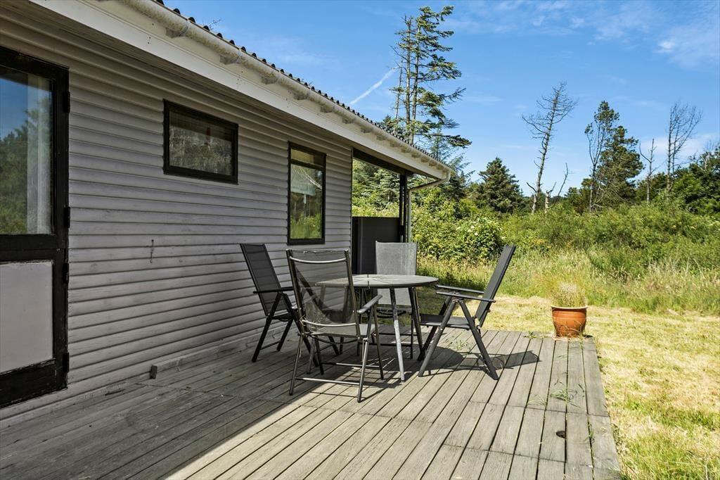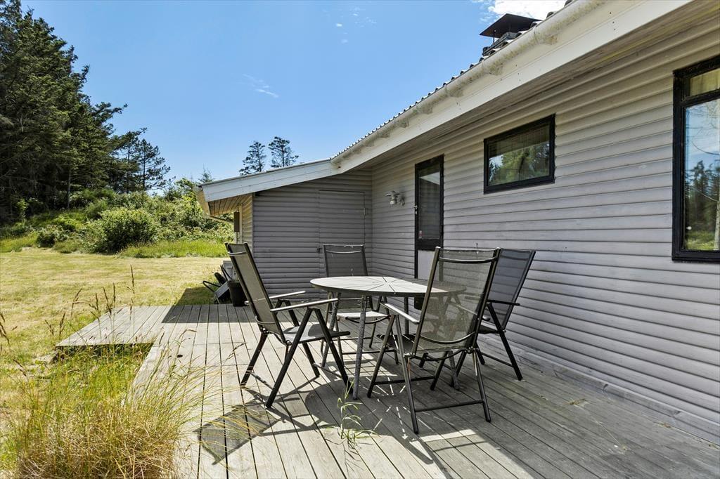Das Outdoor-Erlebnis in Rubjerg beginnt auf dem großen, uneinsehbaren Grundstück des Ferienhauses, das reichlich Platz zum Austoben bietet – ob beim Ballspiel, Wikingerschach oder einfach beim Liegen im Gras und dem Lauschen der Vögel. Auf den beiden Terrassen – einer offenen und einer überdachten – kannst du die Mahlzeiten des Tages im Freien genießen oder dich mit einem Buch und einem Glas Wein im Schatten entspannen. Die überdachte Terrasse ist ideal, wenn sich das Sommerwetter mal von seiner wechselhaften Seite zeigt, während die offene Terrasse die ersten Sonnenstrahlen des Tages einfängt – perfekt für den Morgenkaffee an der frischen Luft. Die Natur rund ums Haus schafft eine ganz besondere Stimmung, bei der du sofort spürst, wie der Puls langsamer wird und die Tagespläne dem Moment weichen. Kurz gesagt: Hier findest du alle Elemente, die das Ferienhausleben in Nordjütland so besonders machen.