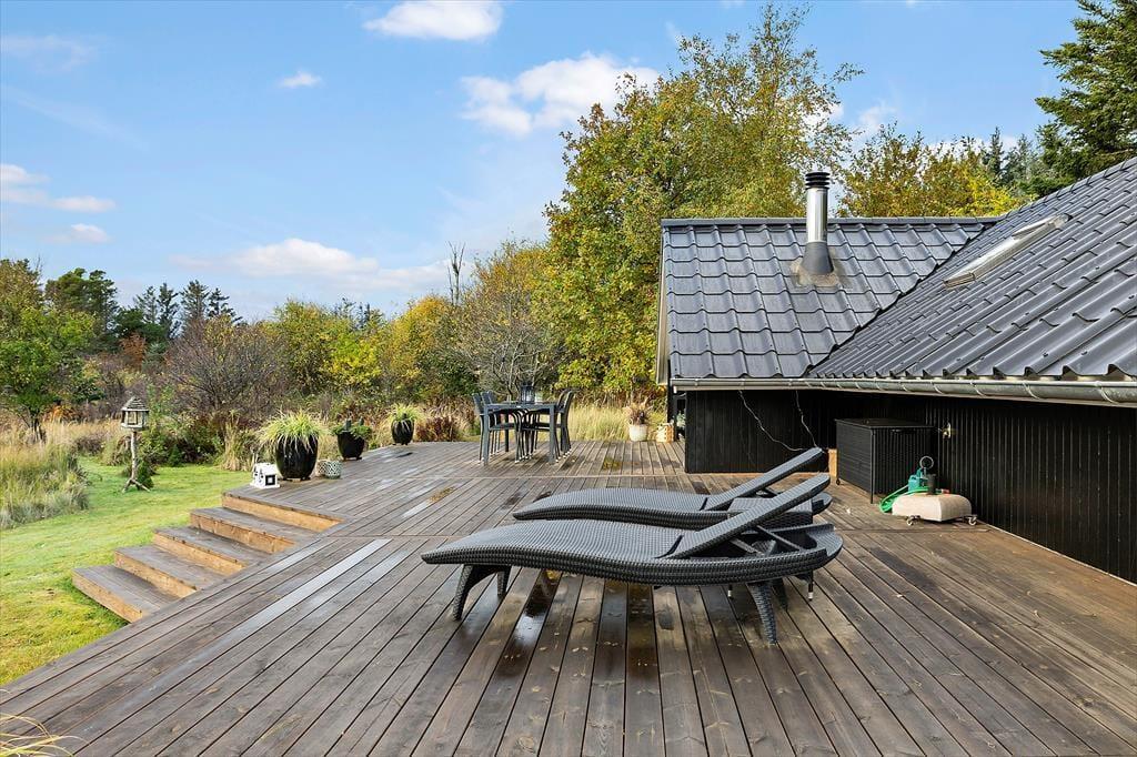 Draußen erwartet Sie eine große, sonnige Terrasse, die zu morgendlichem Kaffee in der Sonne, Mittagessen im Schatten und gemütlichen Abenden am Grill einlädt. Das Ferienhaus liegt auf einem naturschönen Grundstück, auf dem reiches Wildleben jeden Tag kleine Erlebnisse bereithält – Vogelgezwitscher, Rehe in der Ferne und vielleicht sogar ein Eichhörnchen, das vorbeischaut. Die Feuerstelle auf dem Grundstück ist perfekt, um die Familie um die Flammen zu versammeln, Marshmallows zu rösten und den Sternenhimmel zu genießen, wenn die Dunkelheit einsetzt. Hier herrschen Frieden und Ruhe, und das Grundstück bietet viel Platz zum Spielen, für Spiele und zur Entspannung – eine einzigartige Kombination aus Naturerlebnissen und heimischem Komfort.