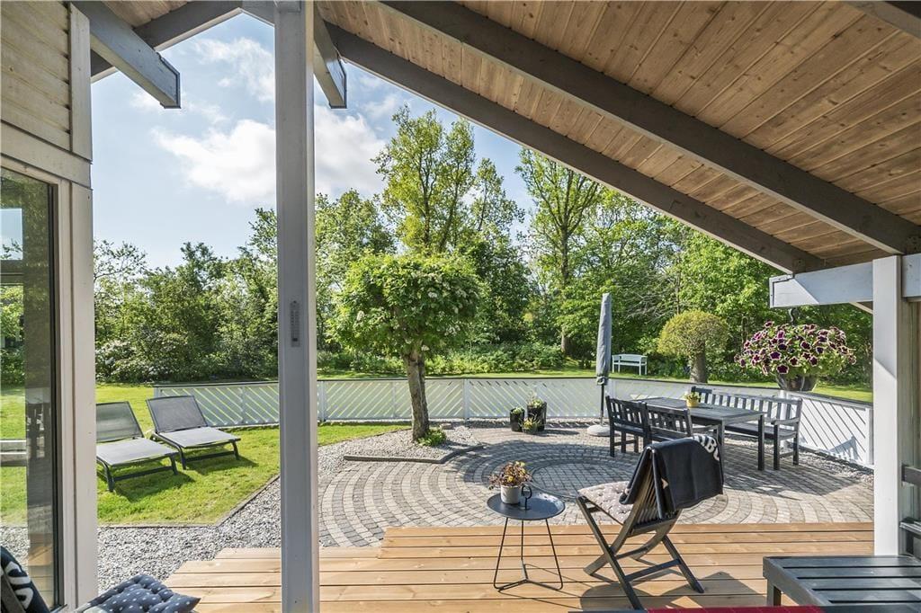 Vom Wohnzimmer aus haben Sie Zugang zu einer überdachten Holzterrasse, die nach Süden ausgerichtet ist, so dass Sie die Nachmittags- und Abendsonne genießen können. Von der Terrasse aus gelangen Sie auf eine schöne geflieste Terrasse. Auf der Terrasse stehen Gartenmöbel und Sonnenliegen zum Entspannen bereit. Es gibt auch einen Grill, so dass Sie Ihre Mahlzeiten draußen auf der Terrasse zubereiten und genießen können, wo Sie Sonne, Schatten und Schutz finden.