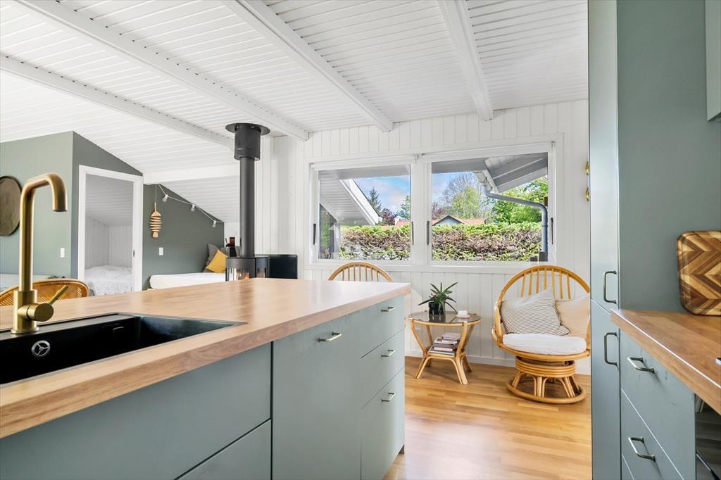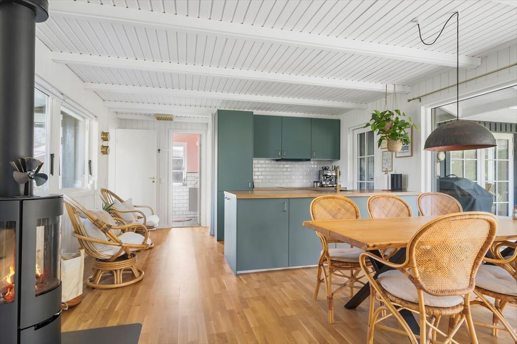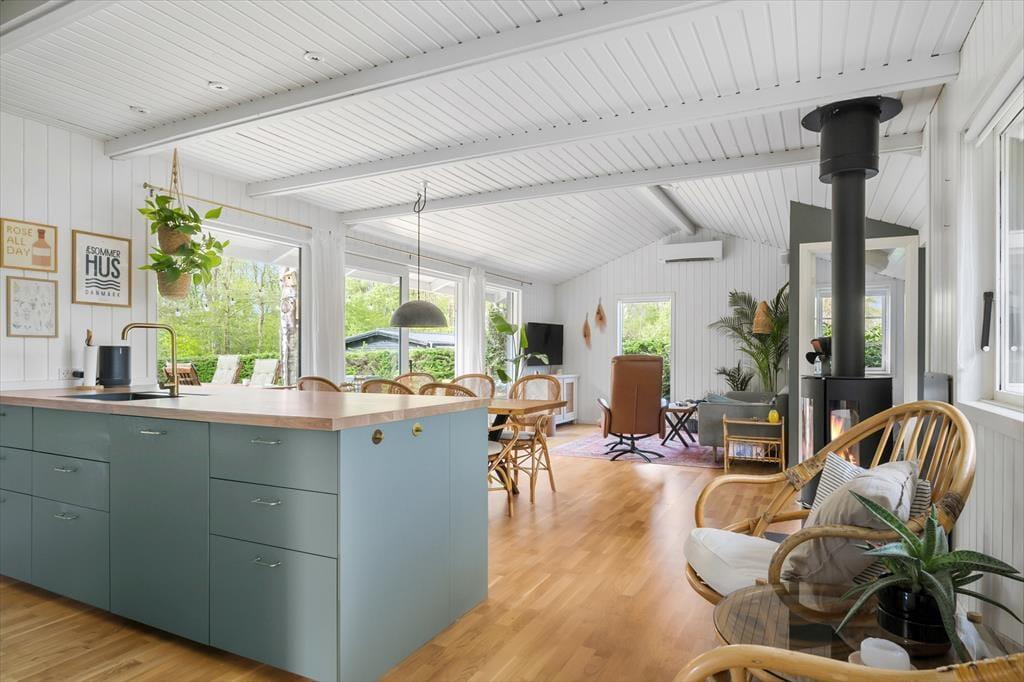 Willkommen in dieser perfekten Ferienoase! Wenn du dieses wunderschöne Ferienhaus betrittst, wirst du von einem hellen und gemütlichen Raum begrüßt, in dem modernes neues nordisches Dekor mit einem Hauch von Sommer die perfekte Sommeratmosphäre schafft. Es gibt viele gemütliche Ecken zum Entspannen und einen gemütlichen Holzofen, der zum Aufwärmen einlädt. Der gemütliche Alkoven ist perfekt, um ein Nickerchen zu machen oder ein gutes Buch zu lesen. Die Küche ist offen und funktional, so dass du kochen und trotzdem Teil der Gemeinschaft sein kannst. Der Essbereich, der zur Terrasse hin offen ist, schafft eine wunderbare Verbindung zwischen Innen- und Außenleben. Die hellen Schlafzimmer bieten gute bequeme Betten. Das Hauptschlafzimmer hat einen eigenen Ausgang zur Terrasse, was deinem Urlaub einen luxuriösen Touch verleiht. Das Badezimmer ist modern und hell. In diesem Ferienhaus wirst du dich vom ersten Moment an wie zu Hause fühlen.