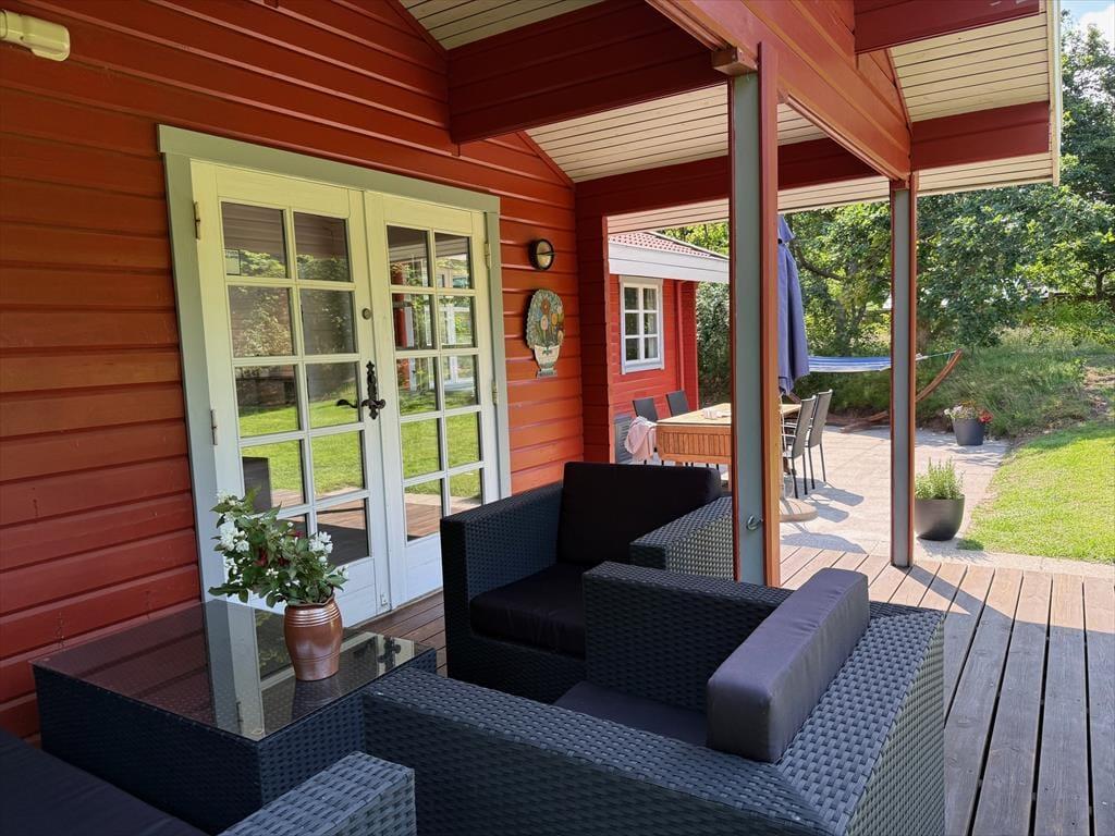 Wenn die Sonne scheint und sich der Duft von Gegrilltem mit dem Rascheln der Blätter vermischt, ist es an der Zeit, das Leben nach draußen zu verlagern. Das große Naturgrundstück lädt ein zum Spielen, Entspannen und Genießen – mit Vogelgezwitscher im Hintergrund. Du findest sowohl offene als auch überdachte Terrassen, auf denen du von morgens bis abends die Sonne genießen kannst. Es ist leicht, deinen Lieblingsplatz zu finden – vielleicht mit einem guten Buch oder einem kühlen Glas Weißwein. Und mit nur einem kurzen Spaziergang zum Strand ist es genauso einfach, sich ein Handtuch über die Schulter zu werfen und das Meer zu genießen – beim Schwimmen, beim Strandspiel oder einfach mit den Füßen im Sand. Das Leben draußen folgt deinem eigenen Rhythmus.