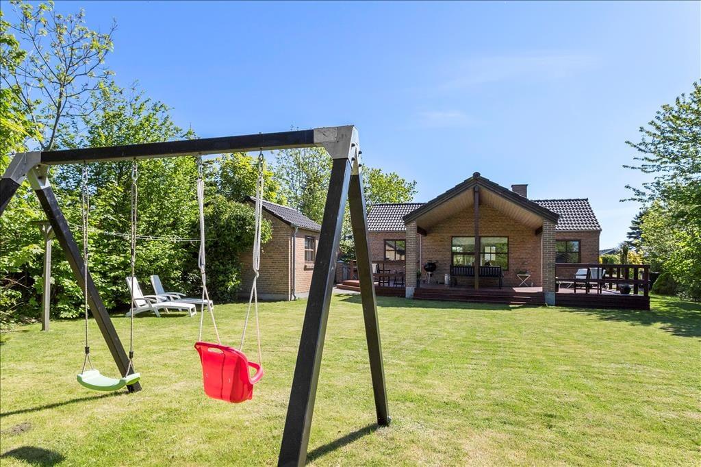 Im schönen Garten gibt es eine herrliche große Terrasse, die einen überdachten und einen offenen Teil hat. Für die Kinder gibt es schaukeln und einen Sandkasten. Hier kann die ganze Familie Urlaub machen.