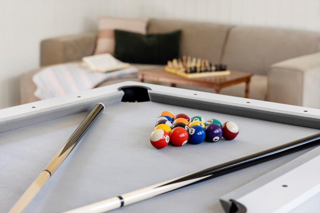 Das Haus verfügt über einen Aktivitätsraum mit einem Multitisch, der für eine Partie Billard, ein Tischtennismatch oder als zusätzlicher Esstisch genutzt werden kann. Der Raum hat auch ein Sofa und einen Smart-TV mit einer Playstation 4