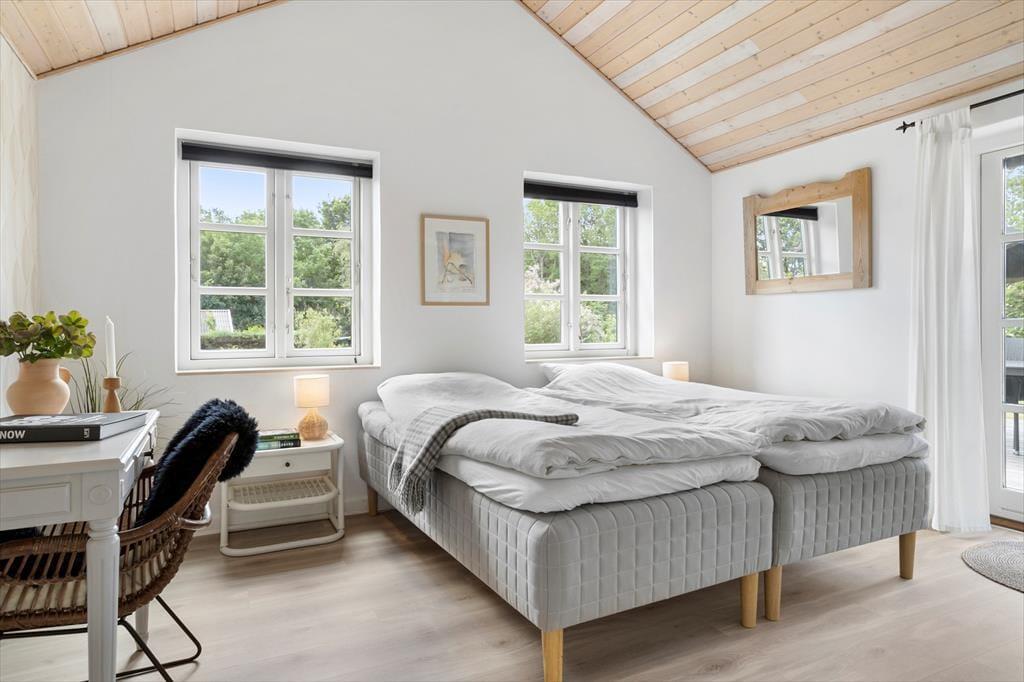 Lediglich 350 Meter trennen dieses Urlaubsdomizil vom Rude Strand, bei dem es sich um einen sehr feinen, kinderfreundlichen Sandstrand handelt. Das Wasser ist angenehm flach, sodass hier selbst die Jüngsten gut baden und planschen können. Von der Küste blicken Sie auf die Inseln Tunø und Samsø, die sich beide für einen Tagesausflug anbieten.