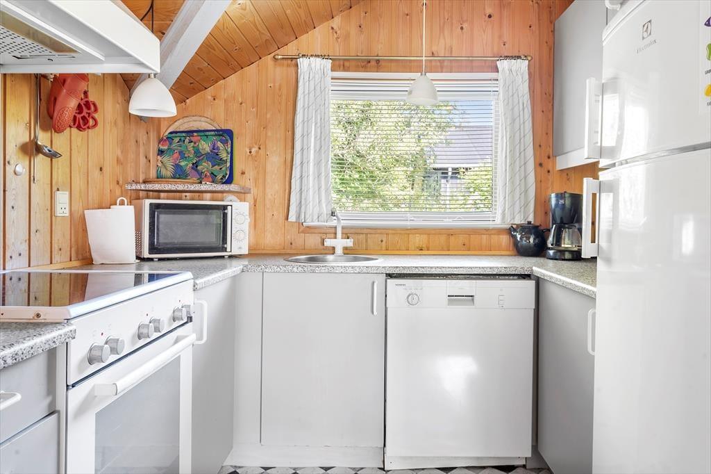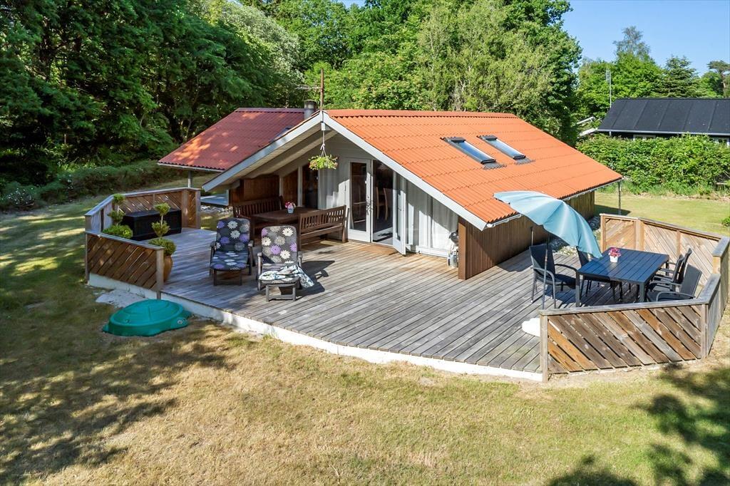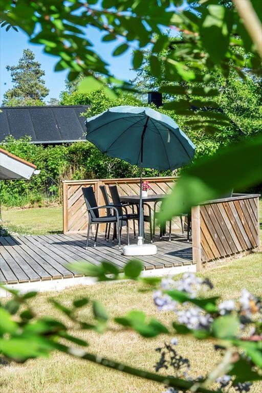 Das Haus liegt am Ende der Straße Strandmarksvej, wo es ruhig und friedlich ist. Für die Kinder gibt es Schaukeln und einen Sandkasten im Garten. Außerdem gibt es eine schöne Terrasse mit Gartenmöbeln, Liegestühlen und einem Sonnenschirm. Der Garten bietet auch viele gemütliche Ecken.
