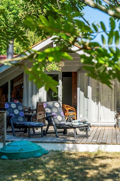 Das Ferienhaus ist gut erhalten. Die Küche, die in Verbindung mit dem Wohnzimmer ist verfügt über einen Geschirrspüler. Im Wohnzimmer gibt es einen Kamin und Sie können ohne kosten das Brennholz benutzen. Im Badezimmer gibt es eine Waschmaschine. Das Ferienhaus bietet drei Schlafzimmer. Das eine mit einem Doppelbett, das andere mit einer Bettcouch und das dritte mit einem Etagenbett. Das Haus ist kinderfreundlich, da es u.a. einen Kinderstuhl und ein Kinderbett gibt. Außerdem ist das Haus für Radfahrer gut geeignet.