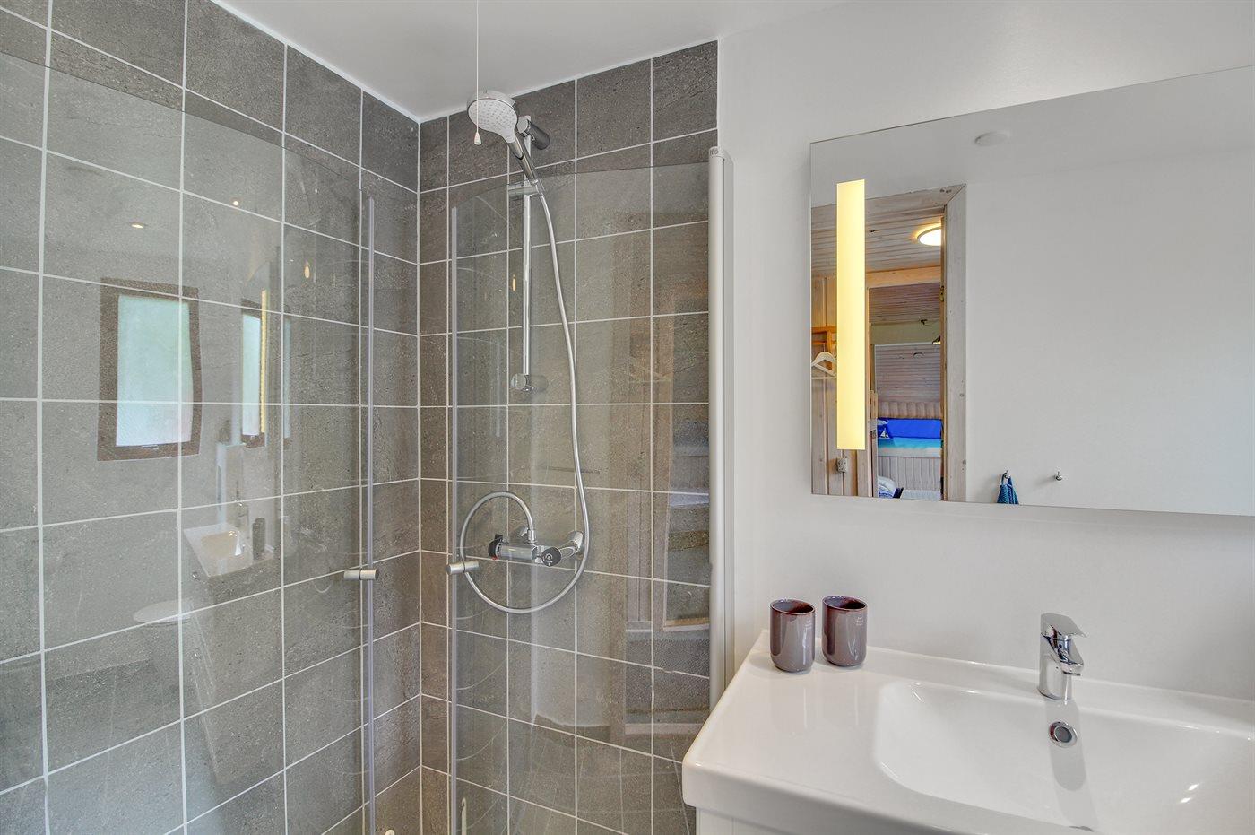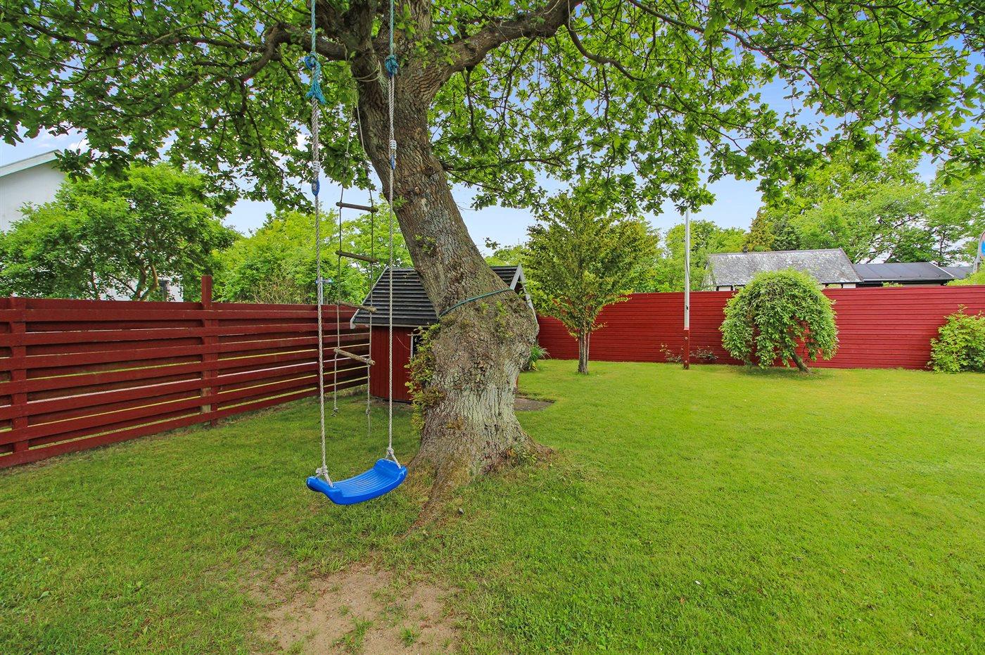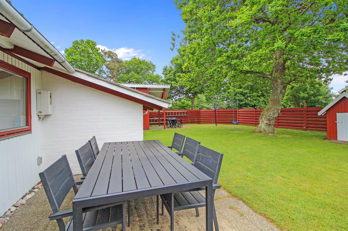 Die Ferienunterkunft liegt auf einem 300 m² großen Gartengrundstück. Das Grundstück ist eingezäunt. Die Entfernung zum Meer beträgt 100 m. Die Entfernung zum Fjord beträgt 2000 m. Die nächste Einkaufsmöglichkeit liegt 1800 m entfernt. In einem Abstand von 14000 m gibt es einen Golfplatz. Es steht ein 30 m² Terrassenareal zur Verfügung. Außerdem gibt es 10 m² überdachte Terrasse. Geräteraum. Schaukel. Sandkasten. Kinderspielhaus. Es steht ein Grill zur Verfügung. Parkplatz auf dem Grundstück.