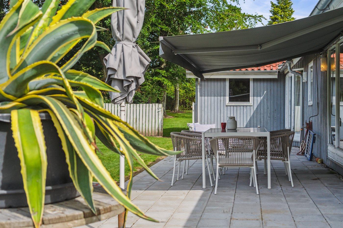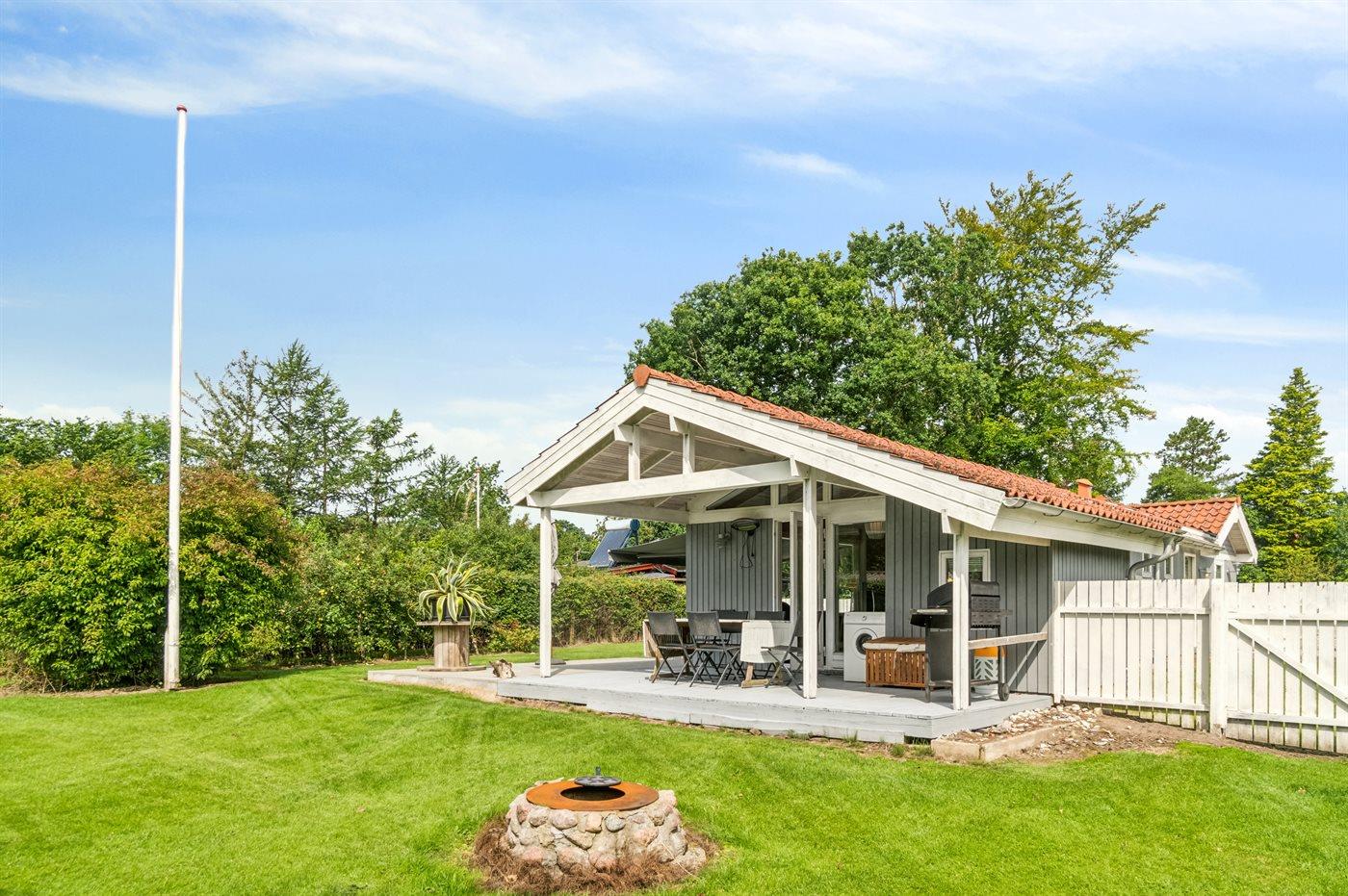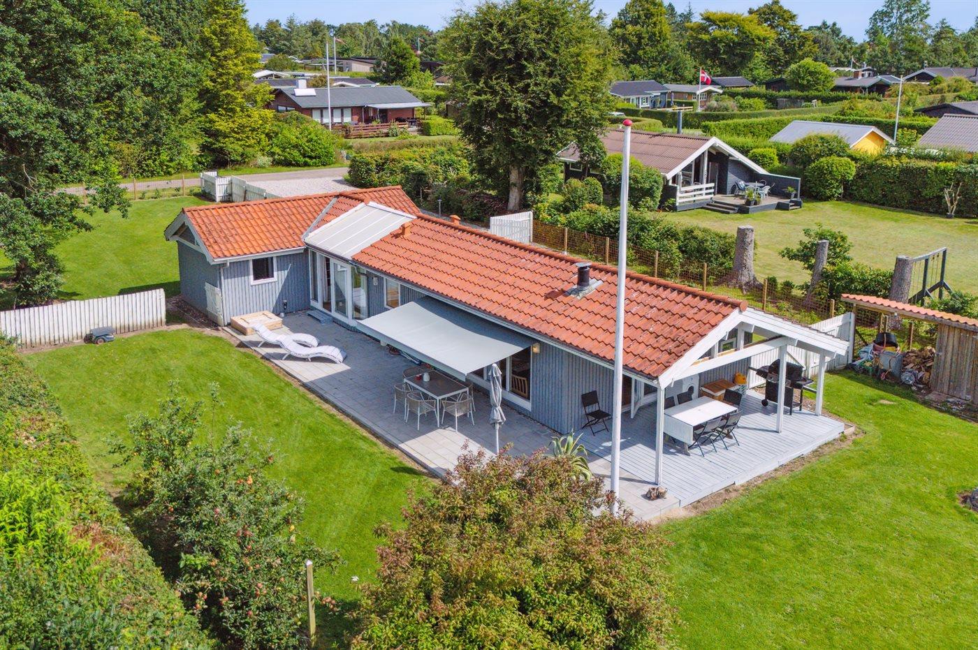 Mit einer wirklich guten Lage im Feriengebiet Rude Strand findest du dieses schöne Ferienhaus auf einem großen und eingezäunten Grundstück, wo sich kleine Kinder und Hunde frei bewegen können.