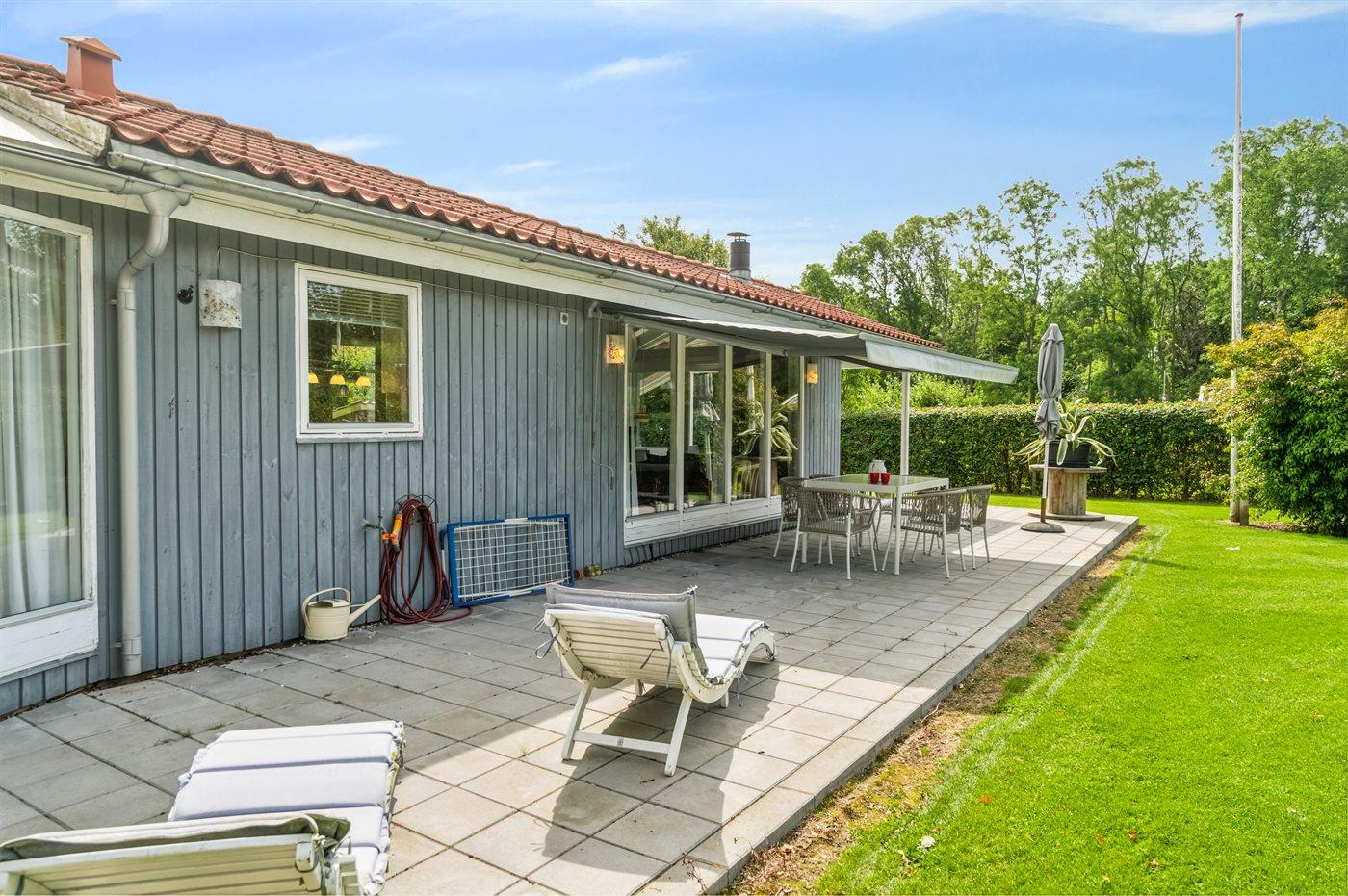 Schönes Ferienhaus in Rude Strand mit großer Terrasse und eingezäuntem Grundstück, ideal für Familien und Haustiere.