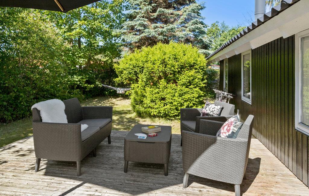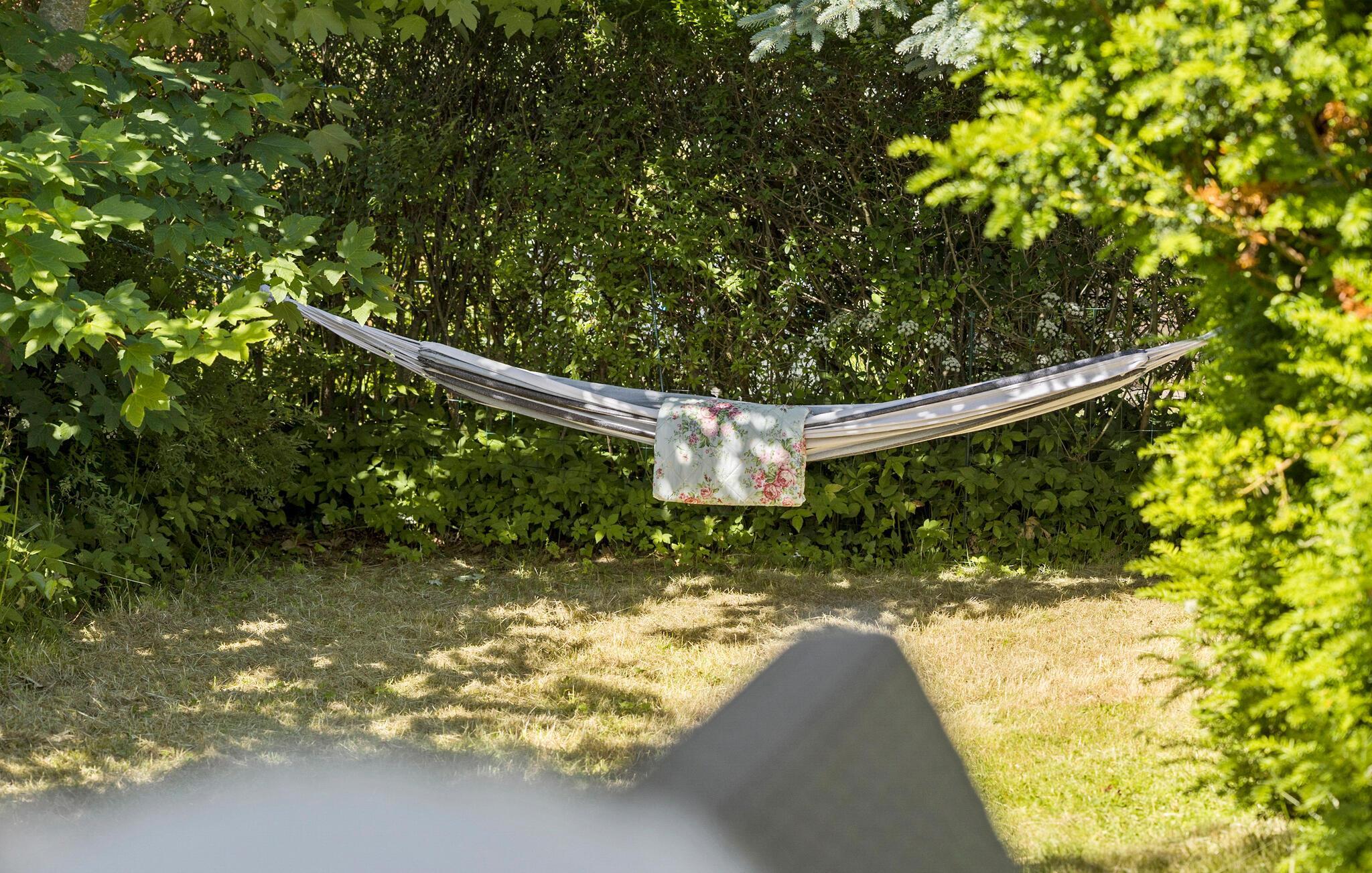 Ihr charmantes Ferienhaus lädt mit seiner großzügigen Terrasse und gemütlichen Einrichtung zum Verweilen ein. Verbringen Sie entspannte Stunden auf der Terrasse, ausgestattet mit komfortablen Sitzmöbeln und einem großen Esstisch für gemeinsame Mahlzeiten im Freien. Beginnen Sie Ihren Tag mit einem Frühstück im Sonnenschein und entspannen Sie anschließend in der Hängematte.