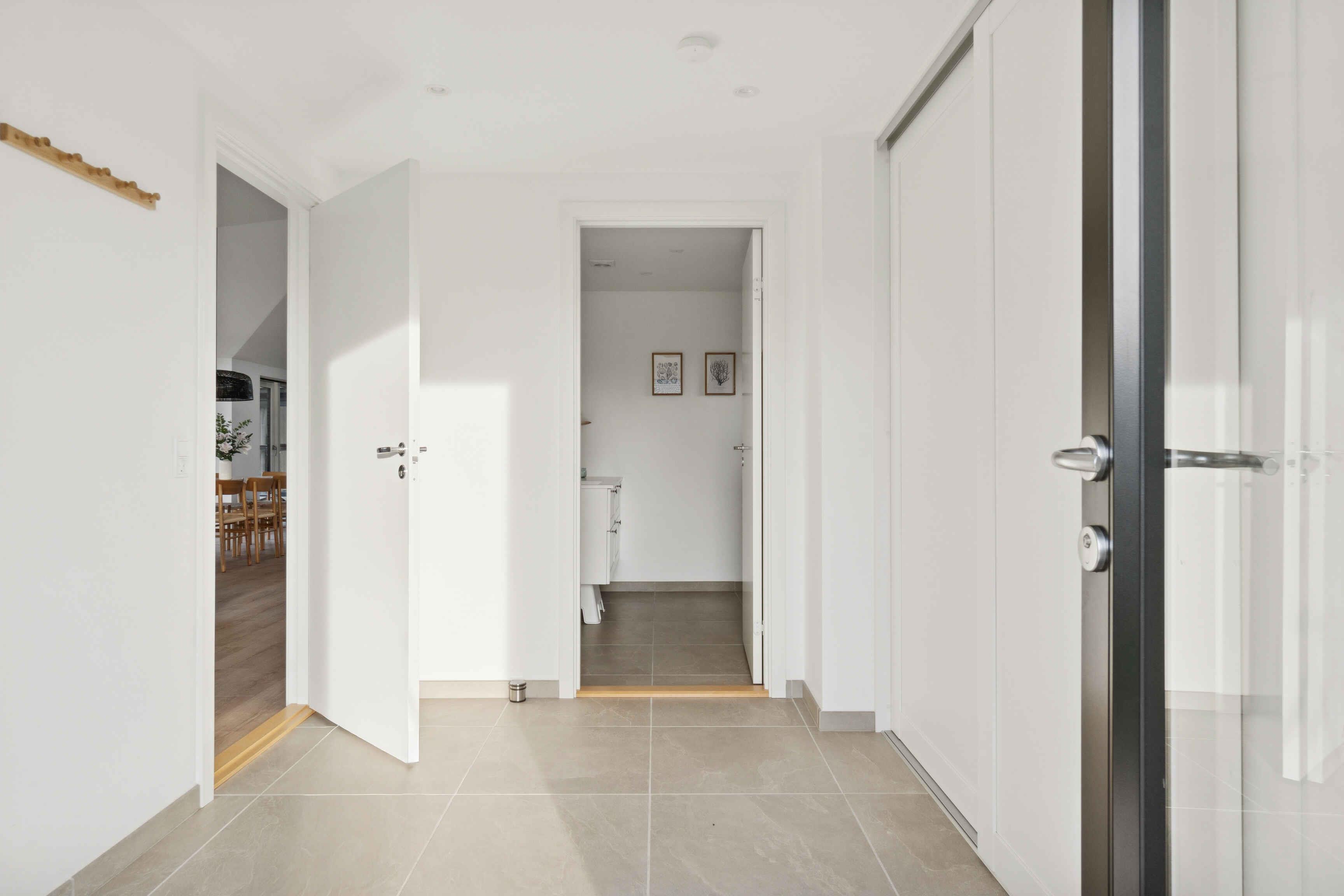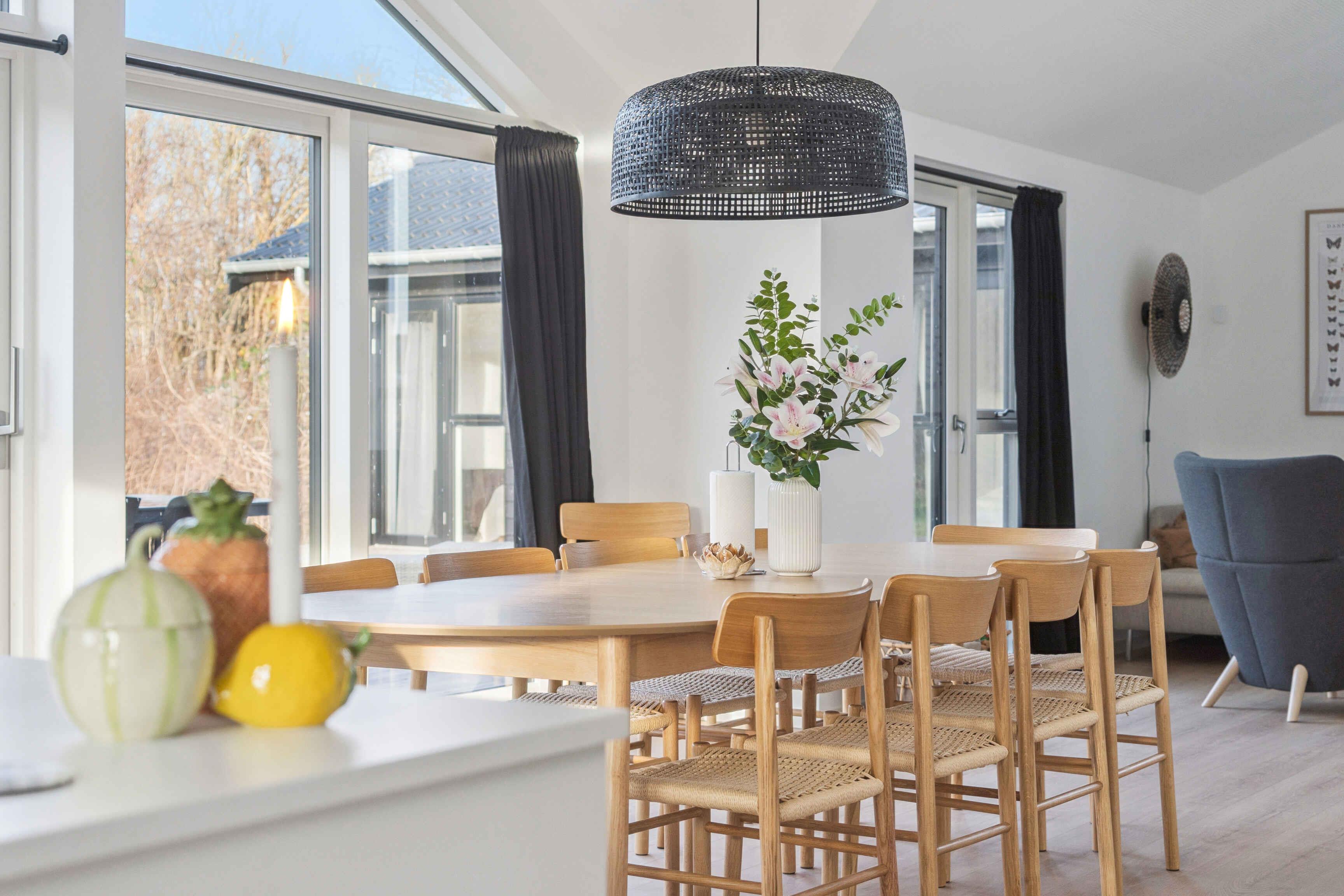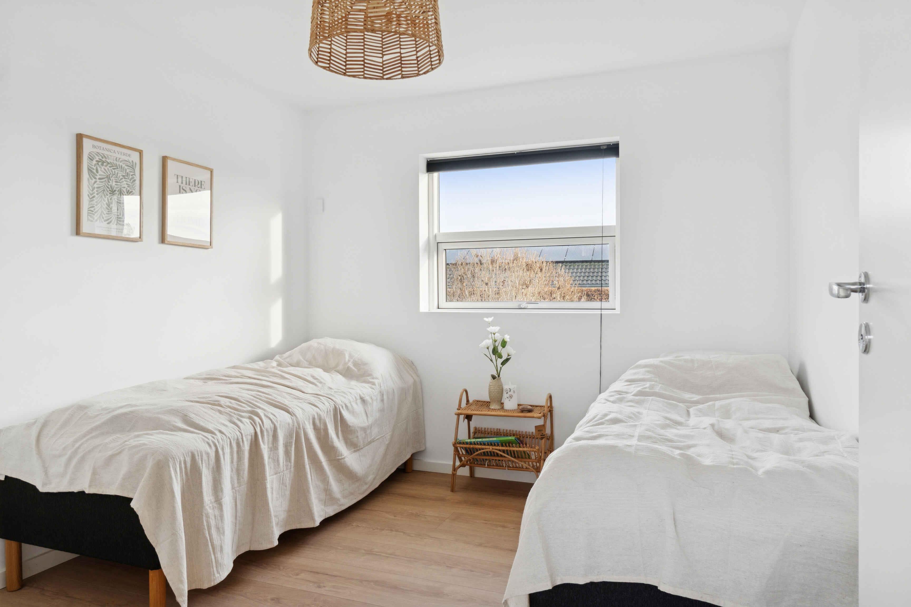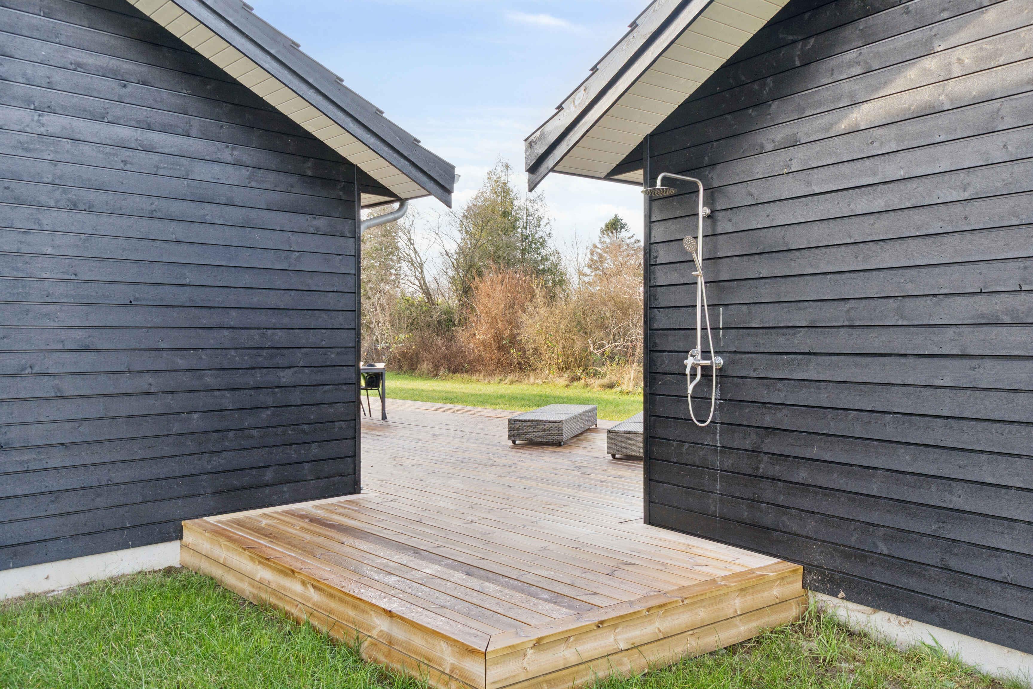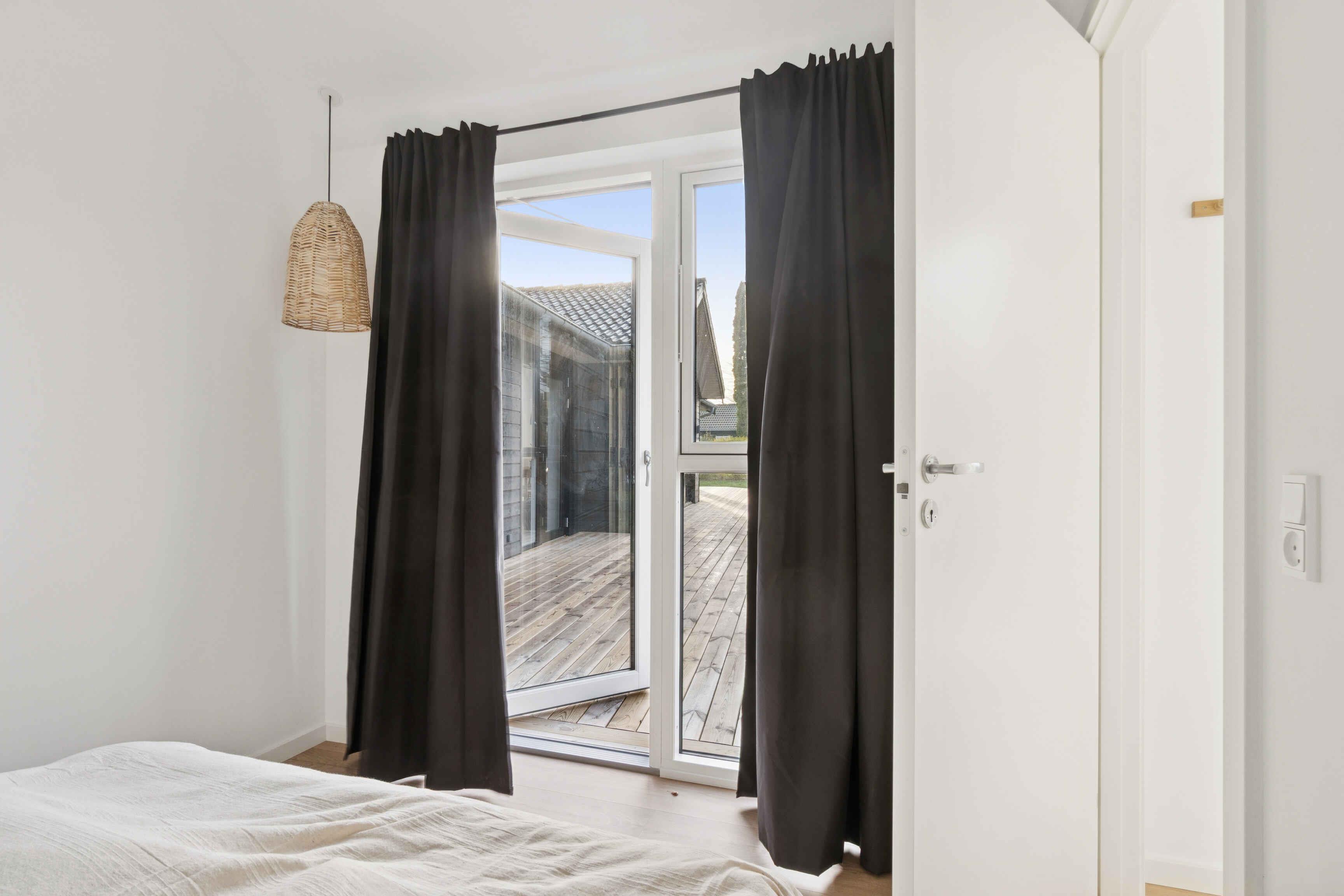 Dieses moderne Luxusferienhaus mit 114 m² verbindet Komfort und Funktionalität in ruhiger Lage. Das Haus verfügt über Fußbodenheizung mit Erdwärme sowie ein 28 m² großes Nebengebäude, das zusätzlichen Platz bietet. Zur Ausstattung gehören 3 Schlafzimmer, eine große abgeschlossene Empore sowie 2 Schlafzimmer im Nebengebäude, jeweils mit eigenem Bad und WC. Ideal für gemeinsames Wohnen und Rückzugsmöglichkeiten. Der Übergang zwischen Innen- und Außenbereich ist fließend. Die 113 m² große Terrasse bietet eine Außendusche und eine kleine Überdachung, perfekt für entspannte Momente bei jedem Wetter. Der Garten ist windgeschützt und ruhig gelegen. Morgens zeigen sich oft Rehe oder Hasen, während Kinder auf dem eingelassenen Trampolin spielen. Die Umgebung ist ideal für Natururlaub. Es sind 250 m bis zum Wasser und 1.000 m bis zum Strand mit Badesteg, Spielplatz, Eisbude, Grill, Restaurant und kleinem Hafen. Ein See in 250 m Entfernung lädt Kinder zum Naturentdecken ein. 750 m entfernt liegt ein Waldgebiet mit Feuerstelle und Schutzhütten sowie eine ruhige Feuerstelle am Fjord. Der Supermarkt ist 1,3 km über einen Feldweg erreichbar. Ein Multisportbereich in 1.000 m Entfernung bietet Fußball, Basketball, Skaten und Tennis. Achtung: Wird nicht für gewerbliche Nutzung vermietet.