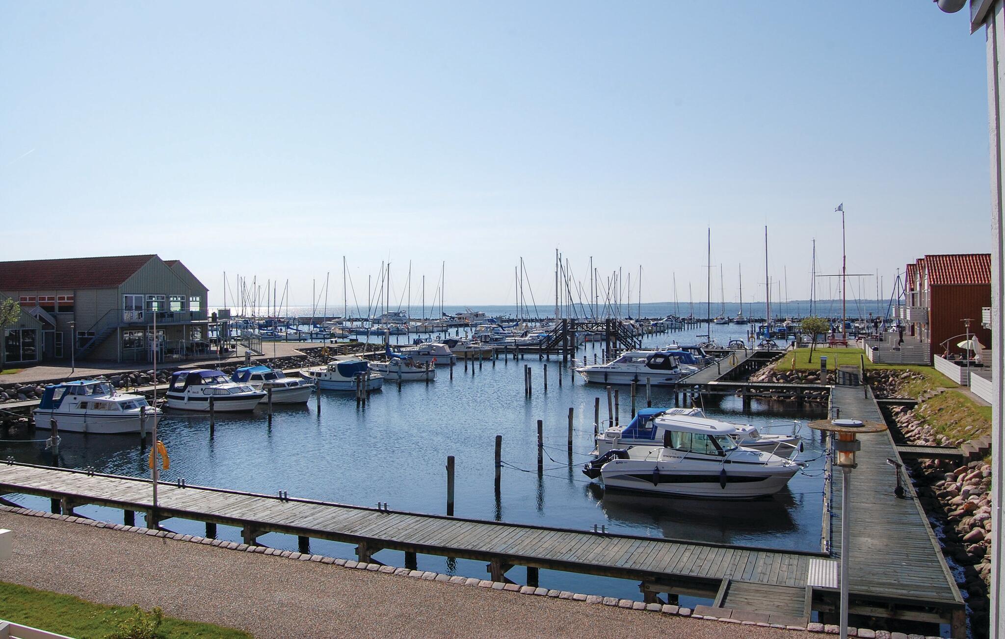 Die Ferienwohnung liegt gut und genießt eine Aussicht auf die Langelandbrücke und Rudkøbings Jachthafen. Nur 50 m von der Wohnung enfernt können Sie von der Mole ins Wasser springen. Die Einrichtung der Wohnung ist modern, die Schlafzimmer haben pflegeleichte Holzfußböden. Hier werden Sie dazu eingeladen, auf der schönen Insel die Natur zu erleben, oder Ihren Urlaub aktiv mit Angeln, Golf und mehr zu verbringen. Sie können z. B. das schöne Schloss Tranekær und seinen Schlosspark und das Langelandsfort mit U-Booten und Flugzeugen entdecken aus der Zeit des Kalten Krieges entdecken. Im Tranekær Schlosspark sehen Sie auch Landschaftskunst. Auf ganzen 140 Kilometern Küstenstrecke haben Sie oft die Gelegenheit zu einer Schwimmtour.