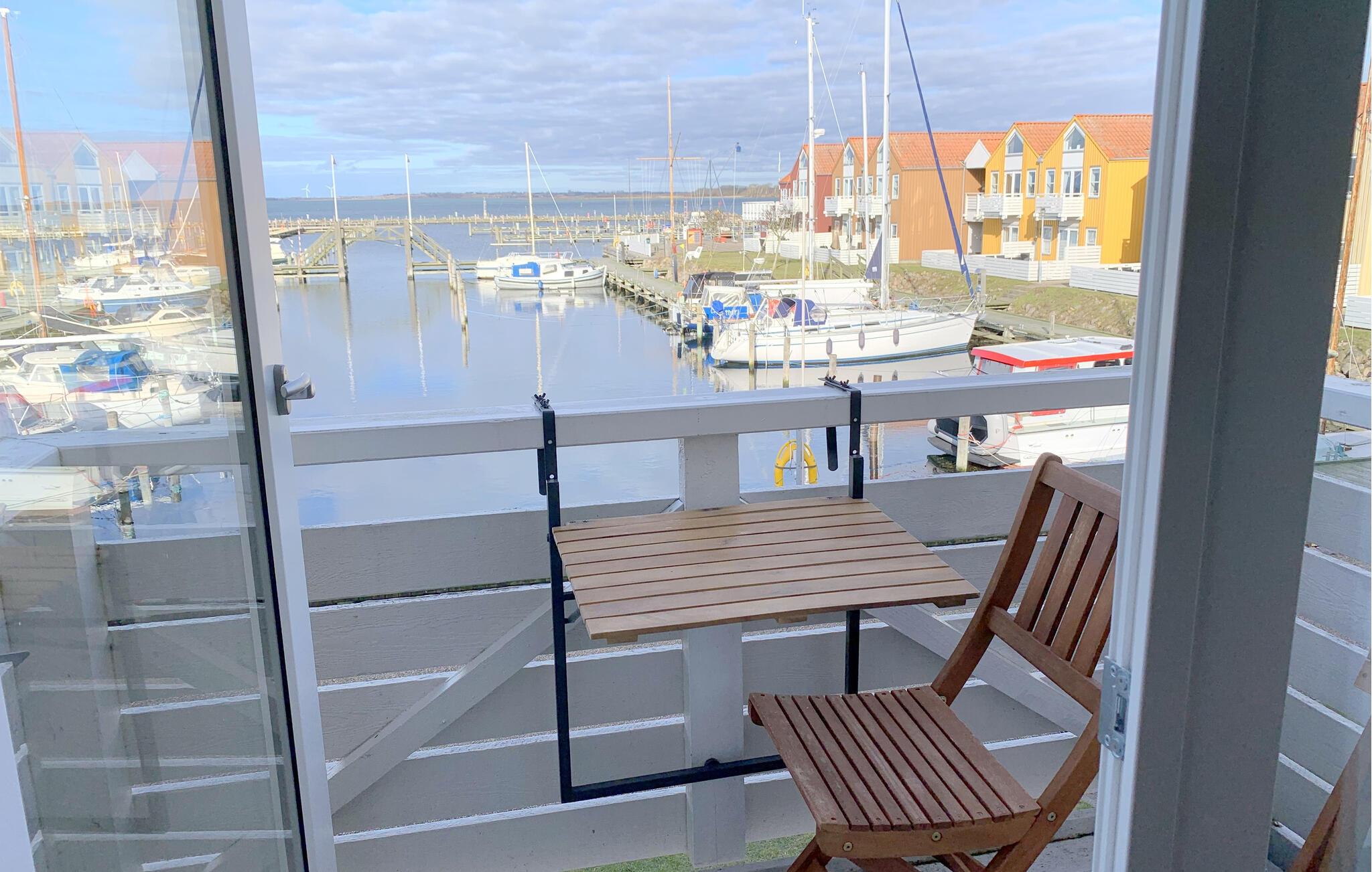 Helle Ferienwohnung mit Balkon und Panoramablick auf Langelandsbroen und Jachthafen in Rudkøbing.
