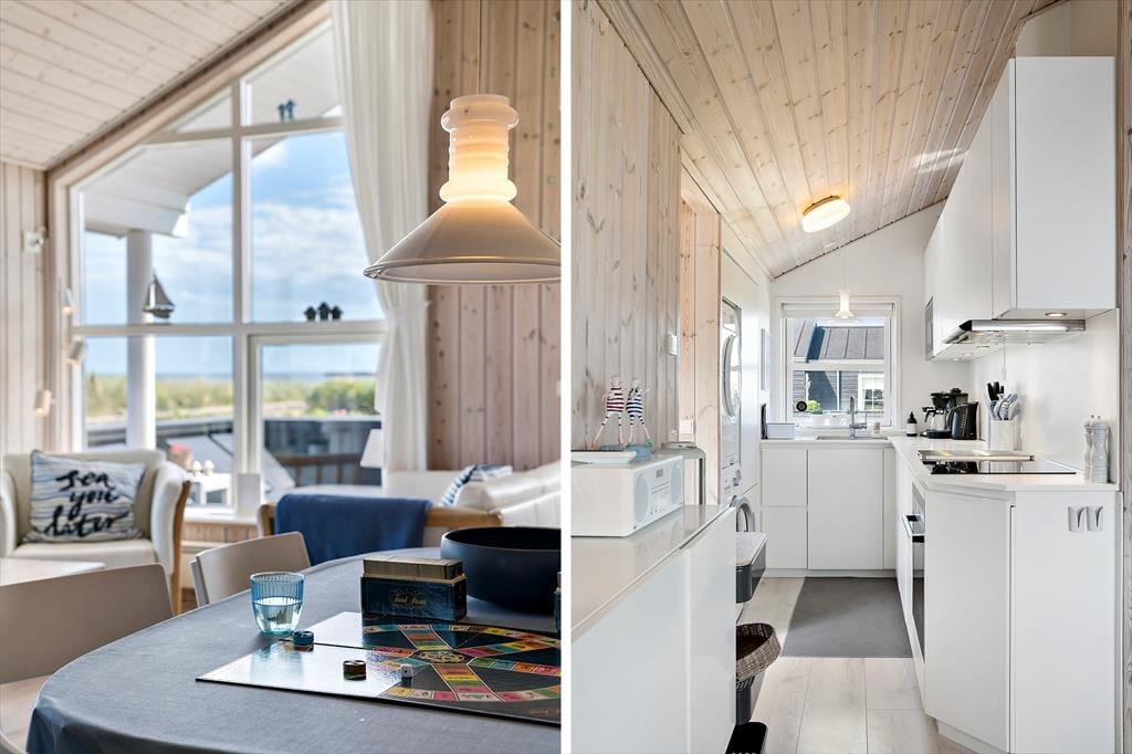 Im Inneren empfängt dich ein helles und einladendes Ferienhaus, in dem viel Wert auf Gemütlichkeit und Komfort gelegt wurde. Die Einrichtung ist modern und stilvoll, ohne dabei die ganz besondere Ferienhaus-Atmosphäre zu verlieren, bei der man sofort die Schultern entspannt und sich zuhause fühlt. Der großzügige Wohnbereich lädt zu gemeinsamen Stunden ein – vielleicht bei einem Kartenspiel am Esstisch oder zu einem gemütlichen Abend auf dem Sofa mit einem Film, während du immer noch den Blick auf das Kattegat durch die Fenster genießen kannst. Es ist der perfekte Ort, um den Tag mit einer guten Tasse Kaffee zu beginnen, bevor ihr gemeinsam eure Pläne für die kommenden Erlebnisse schmiedet.
