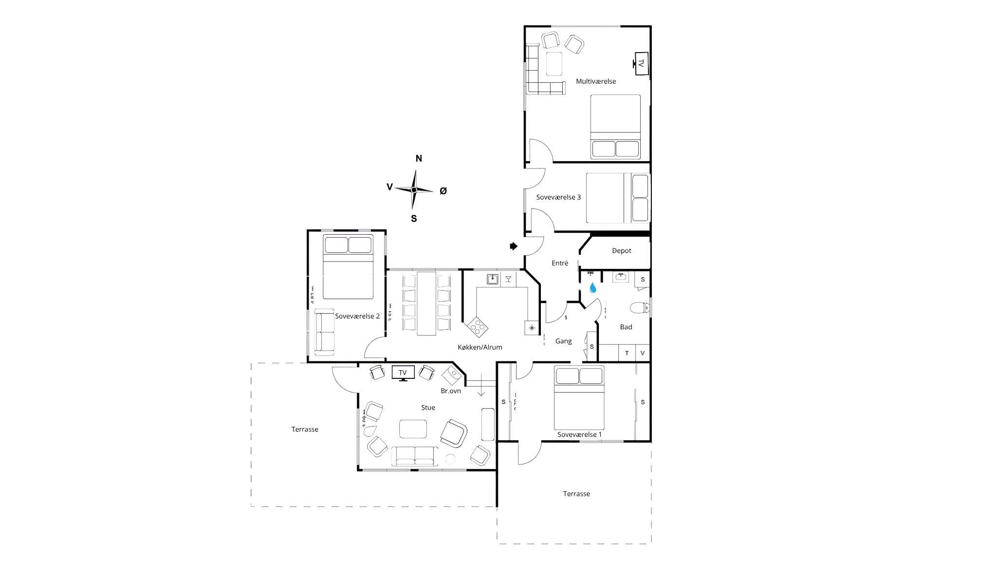Nur 50 Meter von der Küste entfernt befindet sich dieses charmante Ferienhaus, in dem die Urlaubsstimmung beginnt, sobald die Tür geöffnet wird. Das Haus ist schlicht und funktional eingerichtet, mit Fokus auf Entspannung und Gemeinschaft – perfekt für Familien und Freunde, die einen ungestörten Urlaub in der Nähe von Natur und Meer wünschen. Das Haus liegt am Ende einer privaten Sackgasse und bietet drei Schlafzimmer mit Doppelbetten und ein Schlafsofa, insgesamt acht Schlafplätze. Es gibt ausreichend Platz für große und kleine Gäste. Küche und Wohnzimmer sind zu einem hellen, offenen Wohnbereich zusammengeschlossen, der zum Zusammensein, gemeinsamen Essen, Brettspielen oder einfach zum Ausruhen und Genießen der Aussicht durch die großen Fenster einlädt. Draußen kann man auf der nach Süden ausgerichteten Terrasse und im uneinsehbaren Garten, der zu Spiel und Entspannung einlädt, die Sonne genießen; von hier aus gelangt man direkt in ein geschütztes Naturschutzgebiet – alles nur einen Steinwurf vom Strand entfernt. Mit seinen 117 m² ist das Haus weder zu groß noch zu klein – es hat genau die richtige Größe für einen entspannten Urlaub. Außerdem gibt es einen zusätzlichen 27 m² großen Mehrzweckraum mit Tischfußball, einem Megaleg-Multitisch (9-in-1) und einem zusätzlichen Schlafsofa. Hier ist Platz für Spaß und Entspannung, egal bei welchem Wetter oder zu welcher Jahreszeit. Die Terrasse eignet sich ideal für Grillabende und lange Sommernächte unter freiem Himmel oder auf der überdachten Terrasse, während die Kinder sicher im uneinsehbaren Garten spielen können. Die Terrasse ist mit Gartenmöbeln, Liegestühlen und einem Gasgrill ausgestattet. Zwei Haustiere sind erlaubt. Die Umgebung versprüht Urlaubsflair. Der nahegelegene, kinderfreundliche Sandstrand lockt mit klarem Badewasser, Spaziergängen und wunderschönen Sonnenaufgängen – und man kann hier auch direkt von der Küste aus angeln, wenn man seinen Abendfang selbst zubereiten möchte. Sæby liegt in der Nähe und bietet gemütliche Cafés, ein lebhaftes Hafenviertel und gute Einkaufsmöglichkeiten. Es gibt außerdem reichlich Gelegenheit für Radtouren durch die hügelige Landschaft und spannende Begegnungen mit lokaler Kunst und Kultur. Hier finden Sie einen funktionalen, familienfreundlichen und stimmungsvollen Ausgangspunkt für Urlaubstage in der wunderschönen Umgebung Nordjütlands. Egal zu welcher Jahreszeit, das Haus und die Umgebung bieten den idealen Rahmen, um abzuschalten und gemeinsam Zeit zu verbringen.