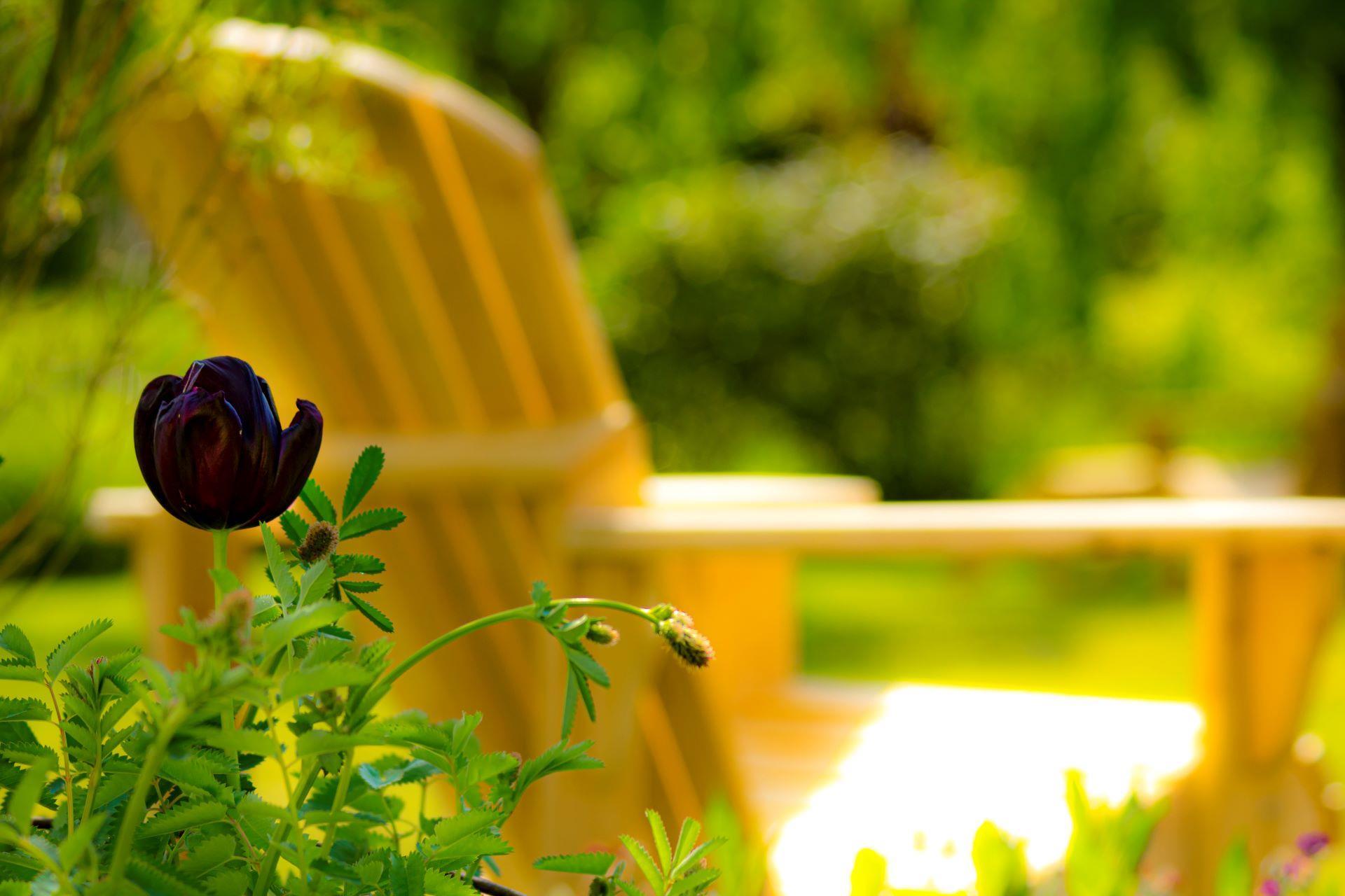 Der Garten hat eine gepflegte Rasenfläche, Blumenbeete, Gartenmöbel und ein Gewächshaus, das gemeinsam mit den Gastgebern im Thoras Haus genutzt werden kann.