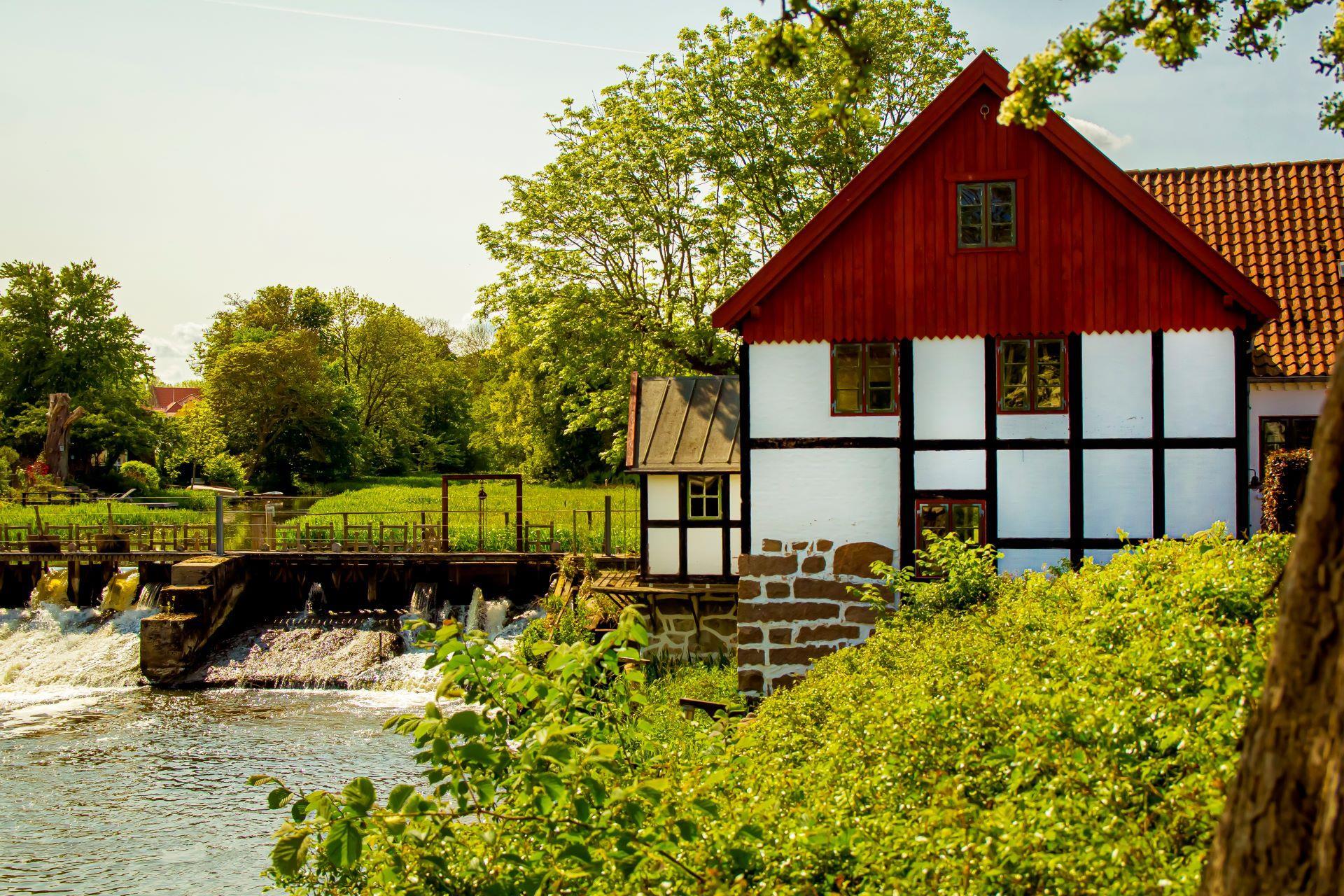 Einzigartige und historische Ferienwohnung mit Blick auf den Sæby Fluss und die Schleuse. Die Wohnung ist 96 qm groß, auf zwei Etagen verteilt und bietet Platz für bis zu sechs Personen. Sorgfältig renoviert, vereint sie heute modernen Komfort mit hohen Decken, freiliegenden Balken und einzigartigen Details, die an die ursprüngliche Nutzung der Wassermühle erinnern. In der Mühle können Sie schöne Mühlräder, die in Wände und Boden eingemauert sind, die originale Hobelbank und dekoratives Werkzeug bewundern – dies alles nimmt Sie mit auf eine Reise durch mehr als 300 Jahre Industriegeschichte. Die Wassermühle beherbergte einst eine Kutschenbauerwerkstatt, eine Holzwollfabrik und eine Möbelschreinerei.