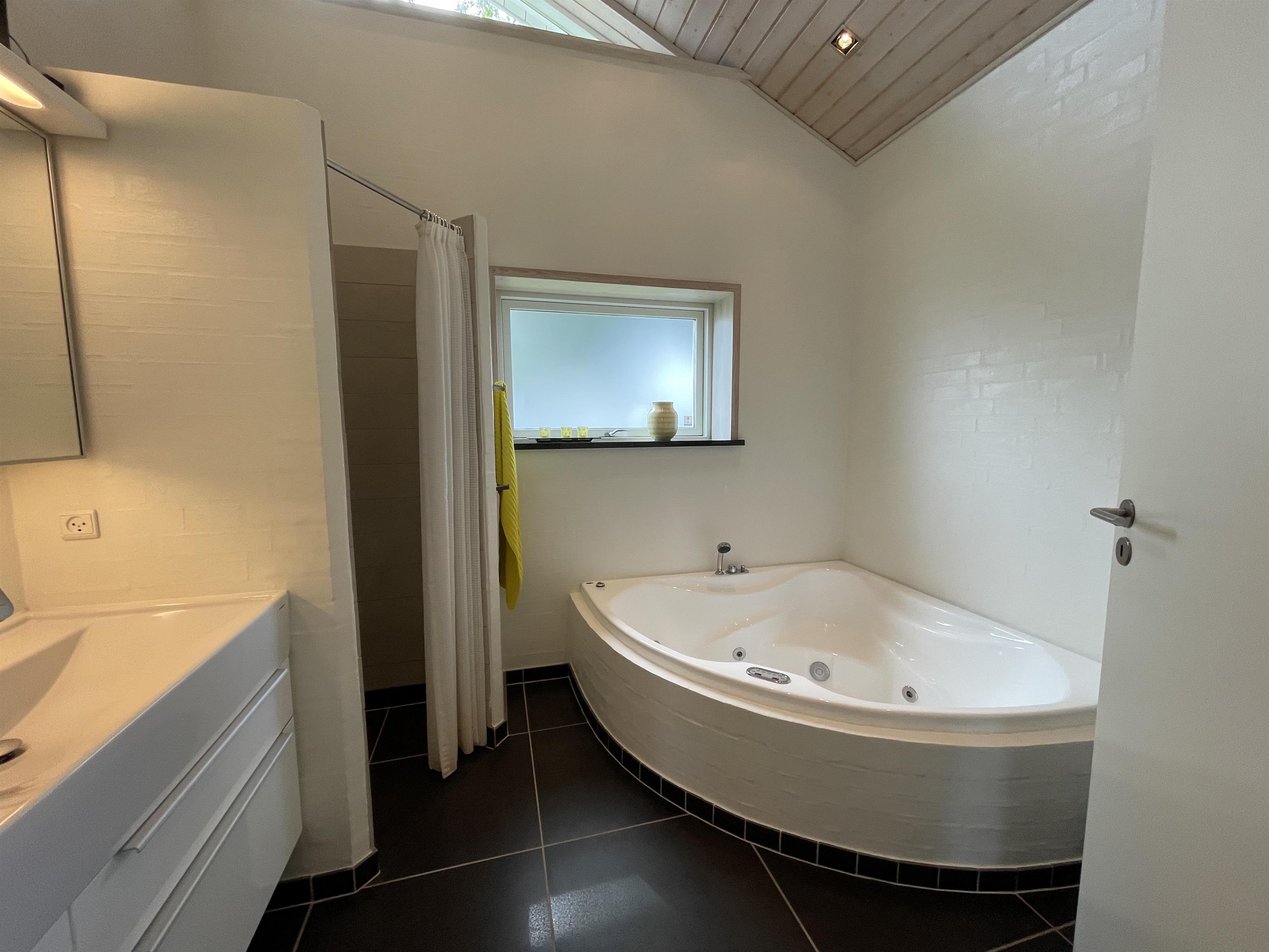 Küche, Esszimmer und Wohnzimmer sind als großer, offener Raum gestaltet, von dem aus Sie einen atemberaubenden Blick auf das Kattegat genießen können. Von der Couch aus können Sie das wunderschöne Panorama bewundern, Frederikshavn am Horizont sehen und den Schiffsverkehr beobachten. Die Küche ist hochmodern mit einer beeindruckenden Granitarbeitsplatte und allen notwendigen Küchengeräten ausgestattet. Es gibt auch einen Quooker, der sofort kochendes Wasser liefert. Im Nebengebäude finden Sie einen zusätzlichen Kühlschrank mit Gefrierfach, ideal für zusätzliche Lagerung. Das Badezimmer ist hell und elegant mit großen Schubladenschränken und einem wunderbaren Whirlpool, in dem Sie sich nach einem erlebnisreichen Tag entspannen können.