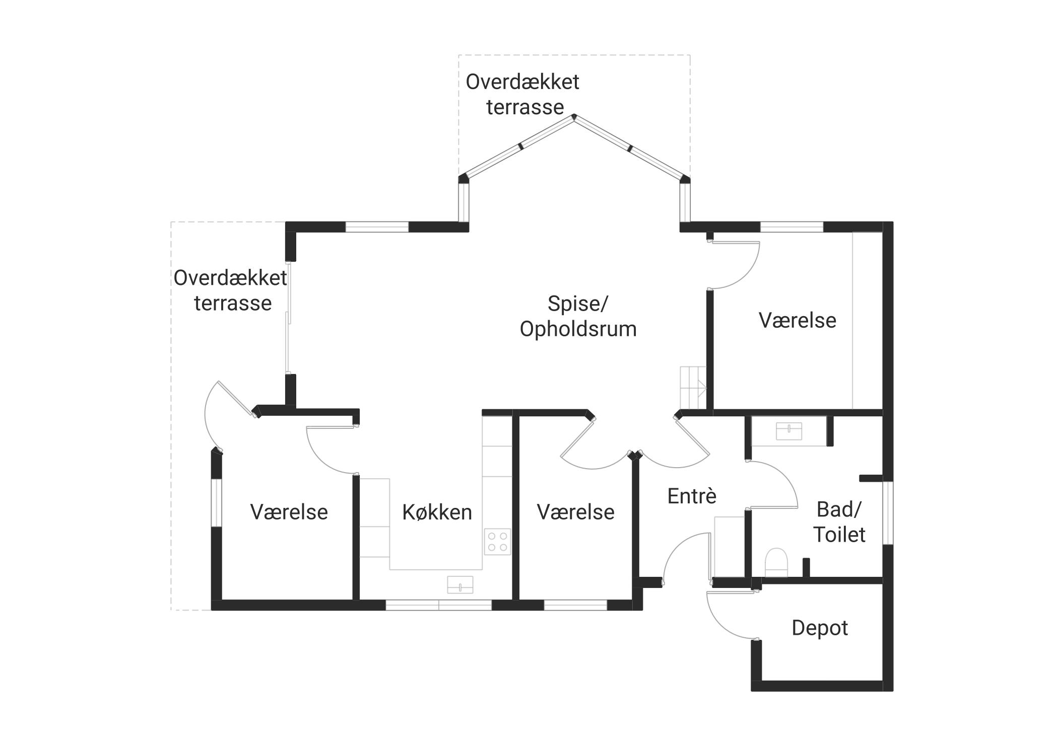 Draußen bietet das Haus einen großen, gemütlichen geschlossenen Innenhof und eine Holzterrasse an der Seite des Hauses, die in einen breiten Laubengang vor dem Haus übergeht. Dies bietet viele Möglichkeiten, die Sonne zu genießen, zu grillen oder einfach die frische Luft zu genießen.