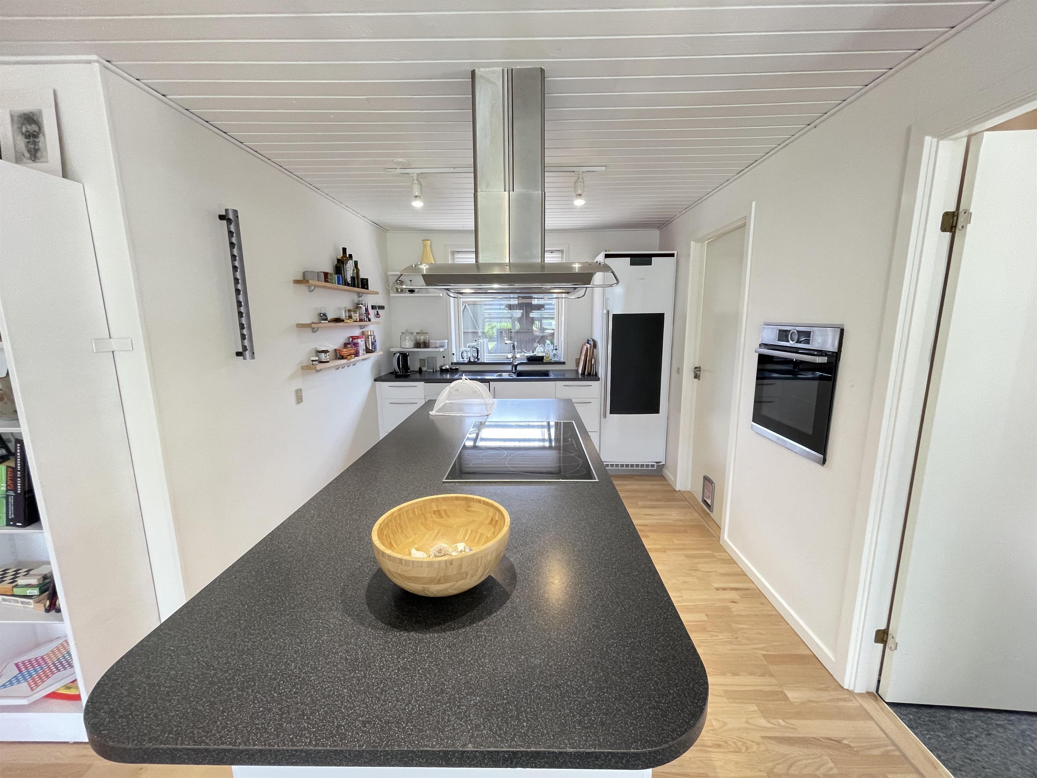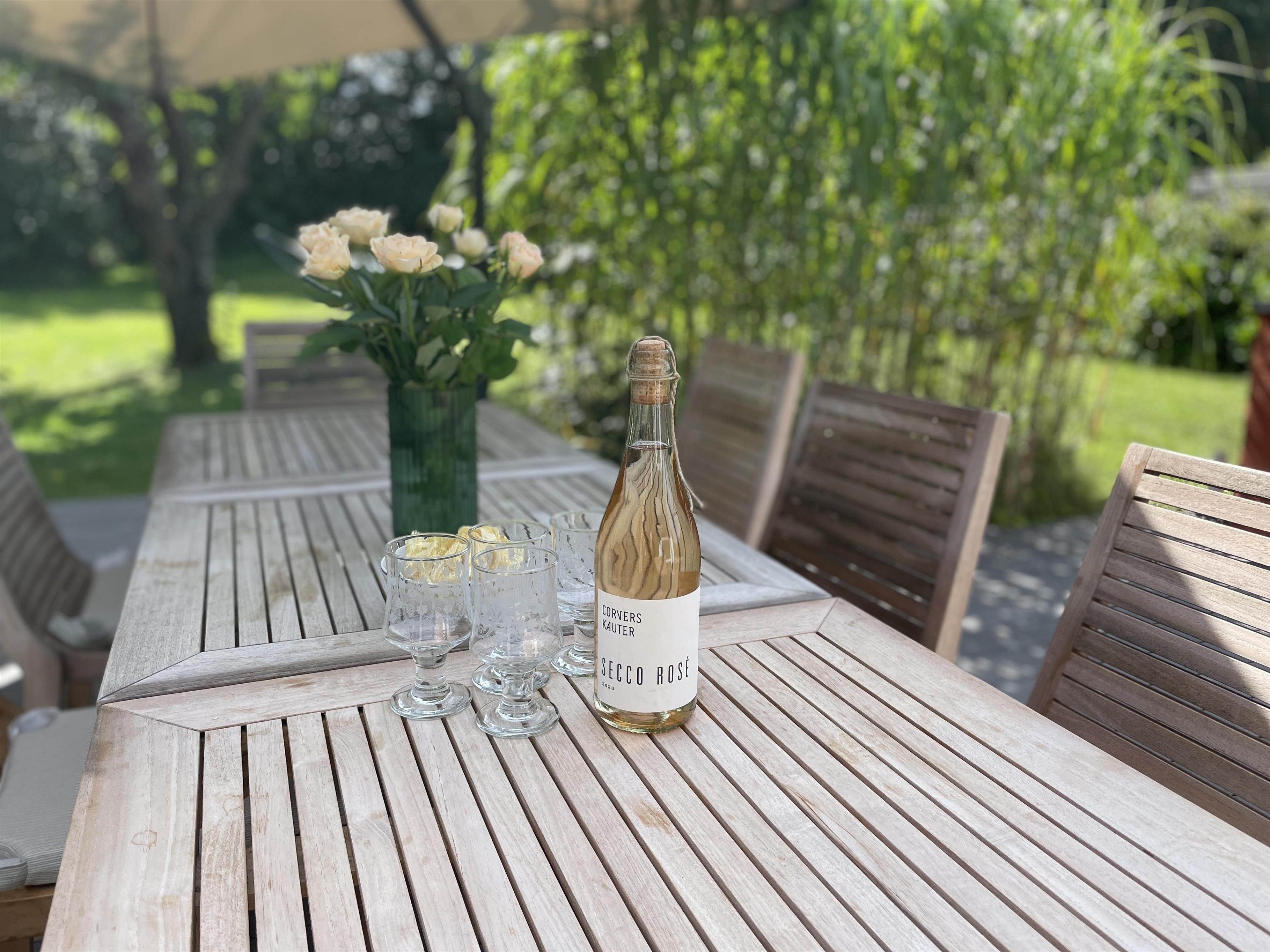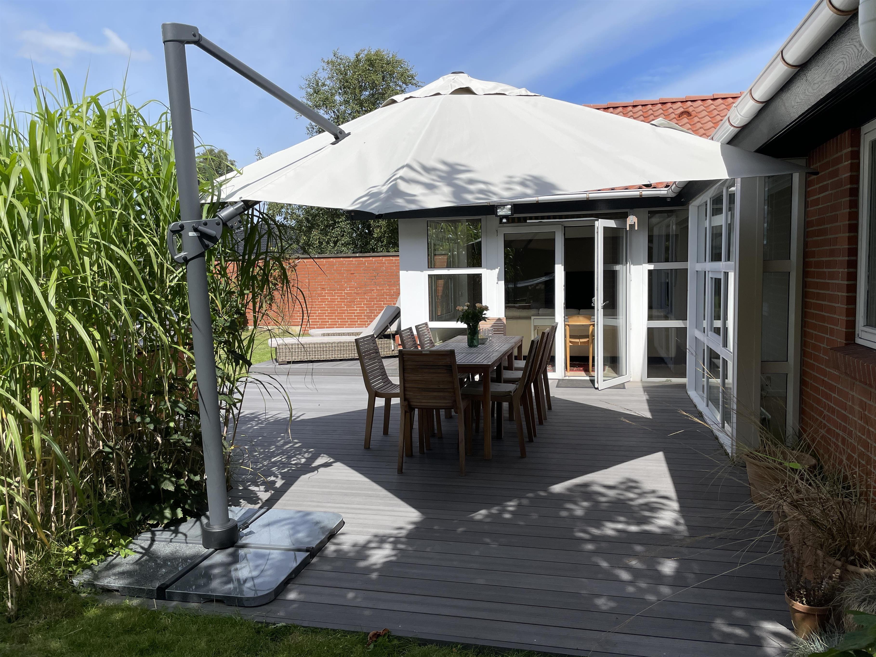 Draußen gibt es eine schöne westlich ausgerichtete und abgeschiedene Holzterrasse im Windschutz des Waldes. Hier gibt es einen gemauerten Gartengrill und eine Außenküche. Auf der Terrasse können Sie das Leben im Freien am Gartentisch oder auf den zwei luxuriösen Sonnenliegen genießen. Es gibt auch einen riesigen Gartenschirm, der über den Esstisch gedreht werden kann. Alle Möbel sind von sehr guter Qualität und es ist ein fantastischer Ort, um die schönen Sommertage und -abende zu genießen.