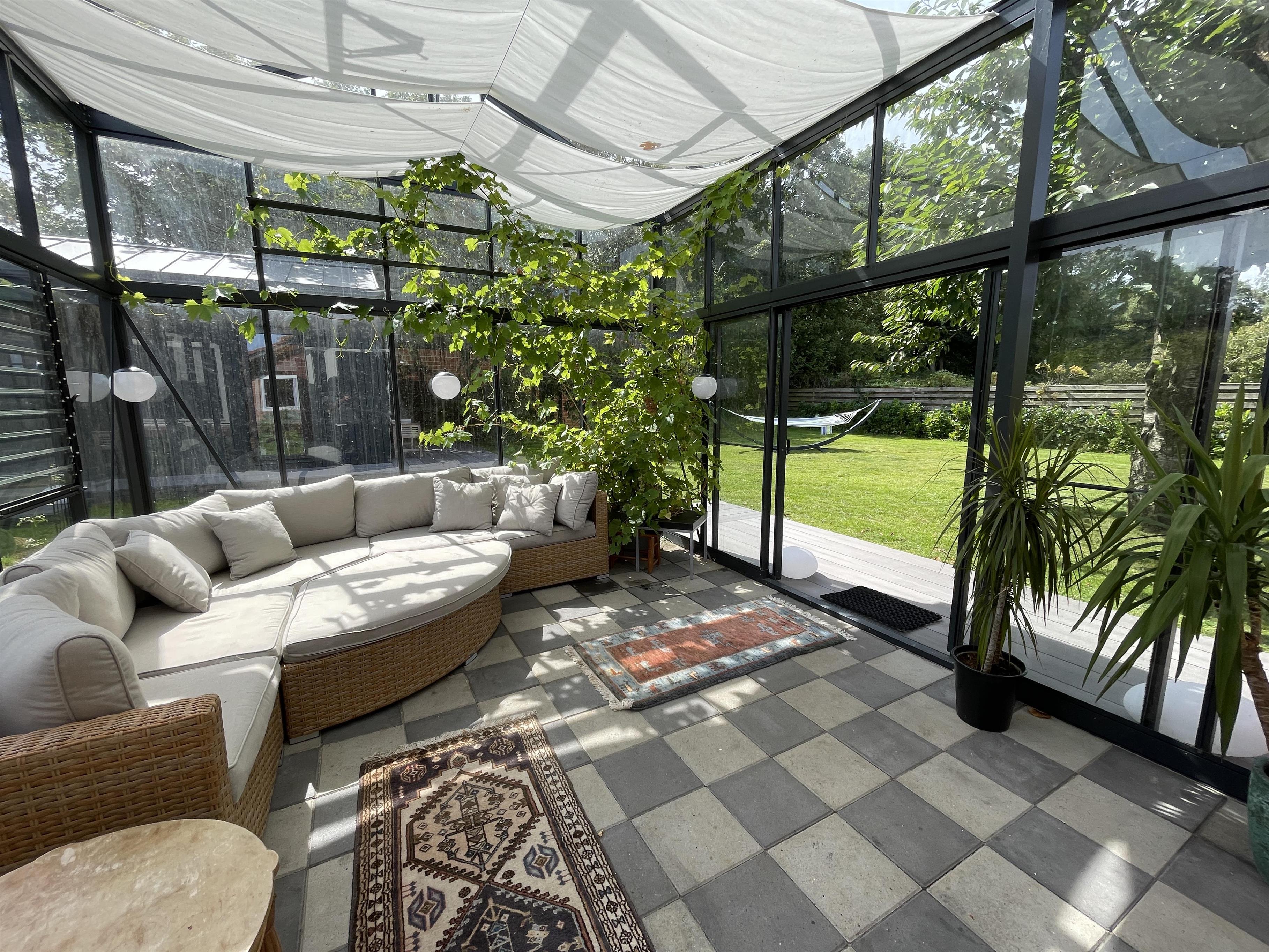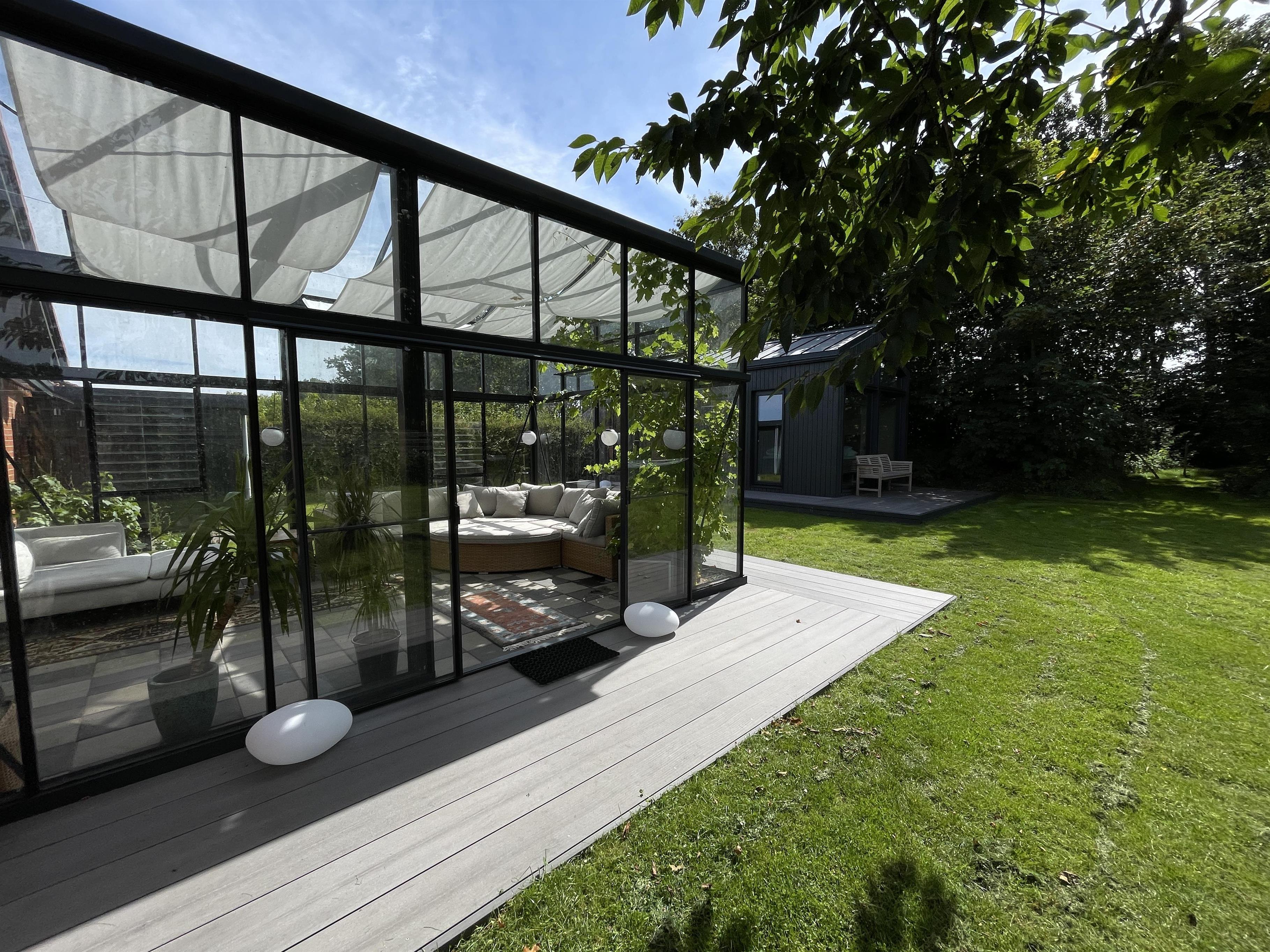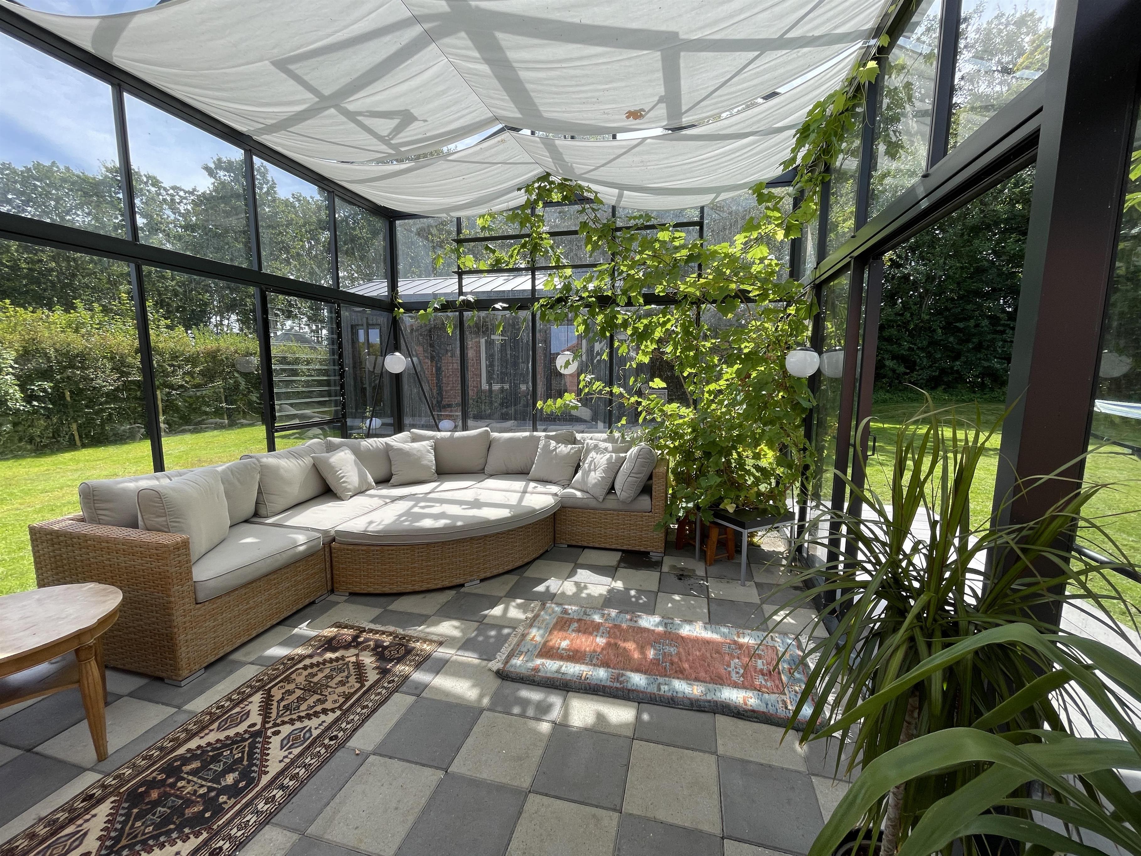 Außerdem bietet das Haus ein sehr charmantes Orangerie, das zu geselligen Zusammenkünften mit Blick auf Garten und Wald einlädt. Das Orangerie ist angenehm mit grünen Pflanzen und hat ein großes neues Sofa, auf dem alle Platz finden. Hier können Sie den Sommer verlängern, wenn das Wetter nicht so gut ist. Es ist immer hell und warm.