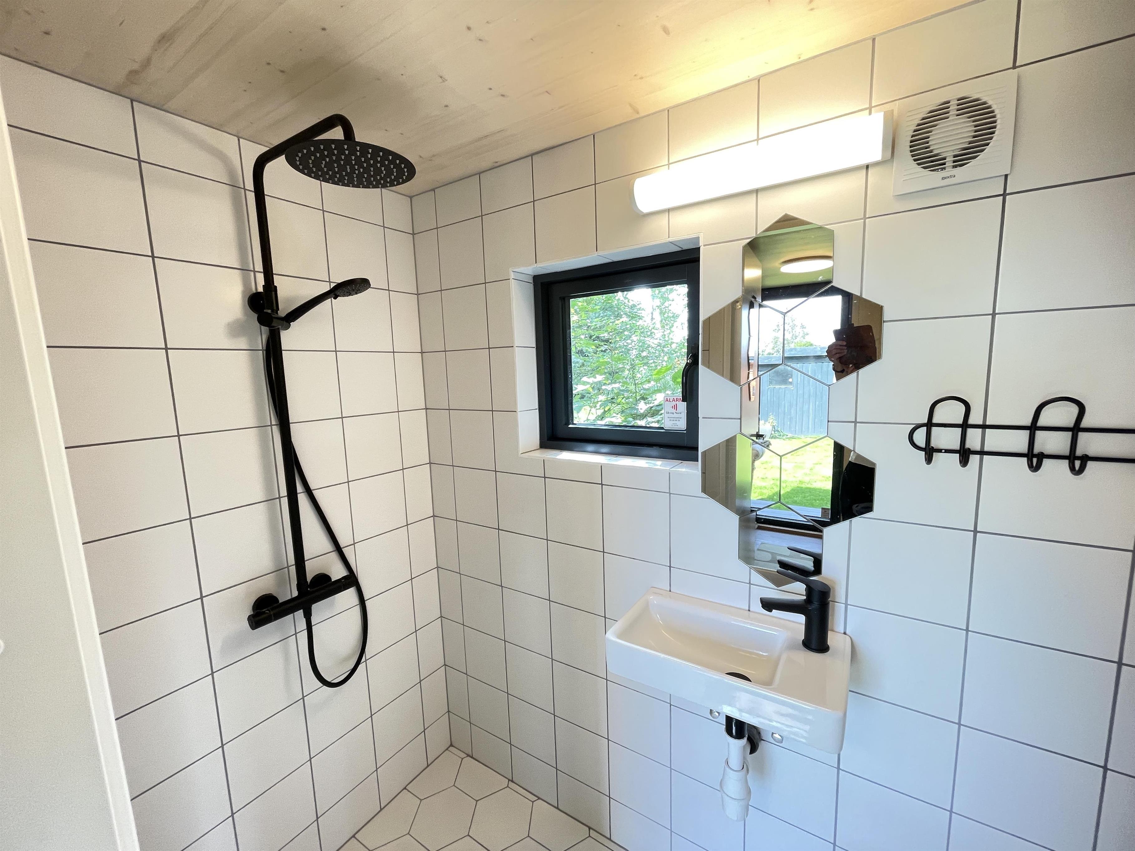 Das Badezimmer im Haus ist sehr schön mit hellen Fliesen. Hier können Sie den Tag beginnen und beenden und die große, runde Duschkabine genießen.