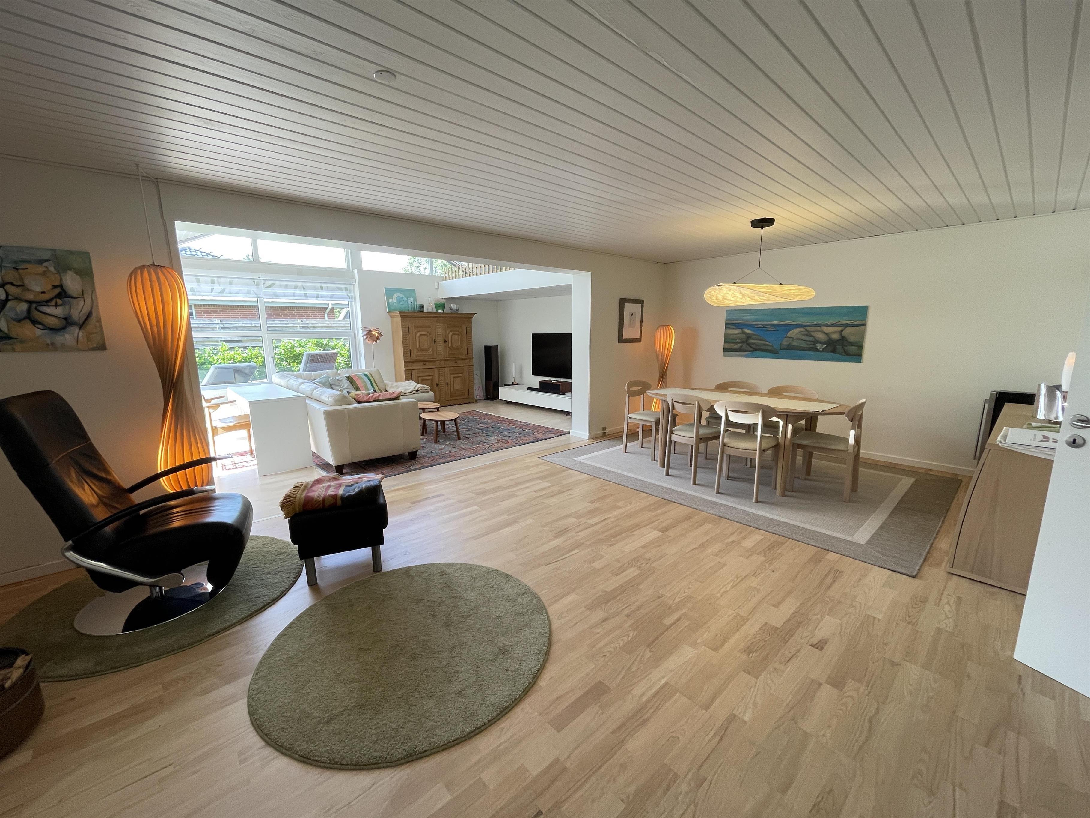 Das Haus liegt in einem charmanten Wohnviertel mit sowohl Strand als auch Wald in der Nähe. Hier gibt es gute Möglichkeiten zum Radfahren oder Spazierengehen über Pfade bis ins Zentrum von Sæby, das mit vielen Geschäften, Cafés und Restaurants eine lebendige Innenstadt bietet. Hier finden Sie auch die Algade, die exklusivste Straße der Stadt, mit kleinen gelben Häusern, Bauernrosen, Kirche und vielen verschiedenen Kunsthandwerkern mit offenen Werkstätten, die Sie und Ihre Familie erleben oder daran teilnehmen können. Die Kirche ist ein Überbleibsel eines Klosters aus dem Jahr 1470 und hat einige wunderschöne Fresken, die vor wenigen Jahren von Konservatoren des Nationalmuseums restauriert wurden. Am Ende dieser Straße liegt der Hafen mit den lokalen Booten, einem aktiven Vereinsleben und im Sommer mit zahlreichen Freizeitsegelbooten und Wohnmobilen.