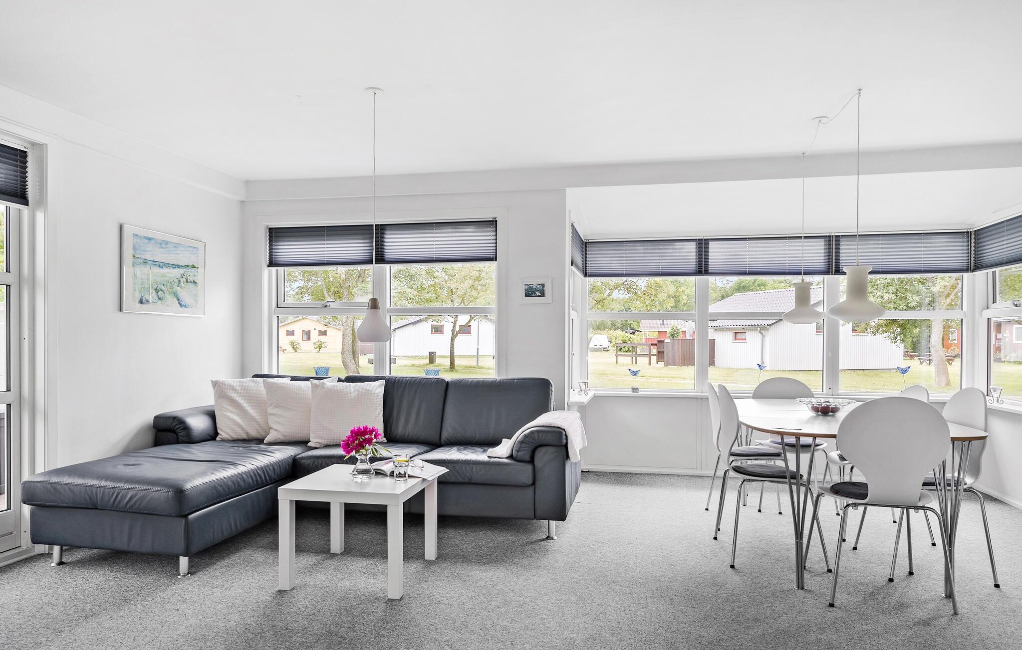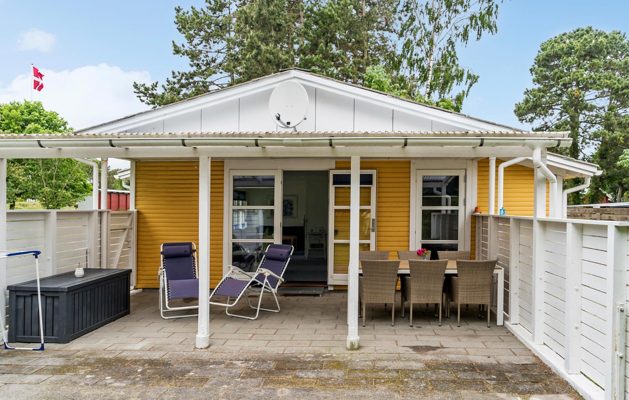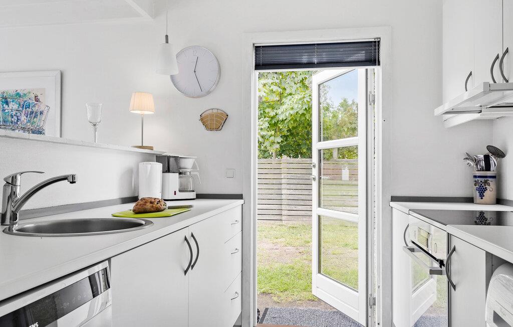 Schon beim Betreten des Hauses kommen Sie nicht umhin, das eleganten Stil zu bemerken, der den Räumen ihren wohnlichen Charakter verleiht. Richten Sie sich häuslich ein, im Wohnbereich haben Sie durch die große Fensterfront einen schönen Blick ins Freie. Nehmen Sie Ihre Mahlzeiten auf der Terrasse ein, auf der Sie windgeschützt sitzen. Der Blick von hier in den Garten sucht seinesgleichen. In diesem Rahmen lässt die Urlaubsentspannung nicht lange auf sich warten. Wenn Sie schwimmen möchten, machen Sie einfach einen kurzen Spaziergang zum Wasser, wo Sie Ihr eigenes Strandgrundstück erwartet.