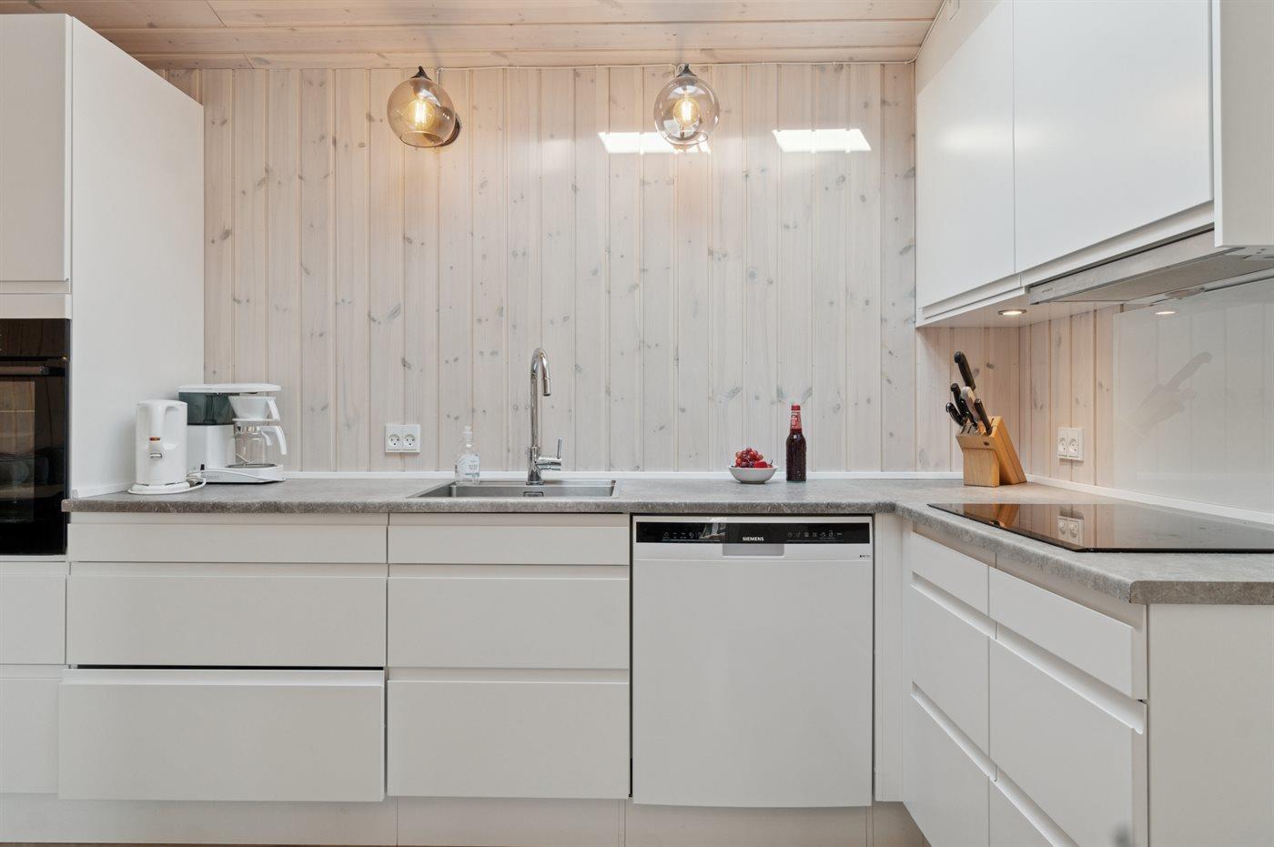 Die Küche ist mit Kühlschrank ausgestattet. Außerdem gibt es 4 Induktions-Kochzonen, Umluftofen sowie Geschirrspüler.