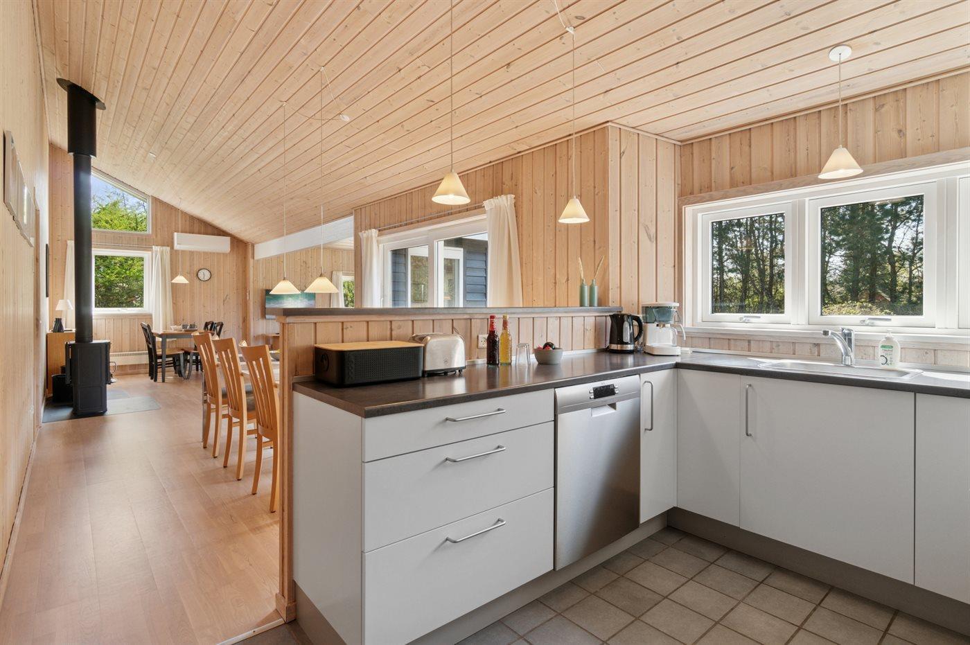 Ein herrliches Ferienhaus auf einem großen Naturgrundstück - in der Nähe von einem schönen Sandstrand und beeindruckender Natur. Das Haus ist hell und modern eingerichtet, mit einer offenen Küche, die mit allen modernen Haushaltsgeräten ausgestattet ist – hier ist ein Vergnügen zu kochen.