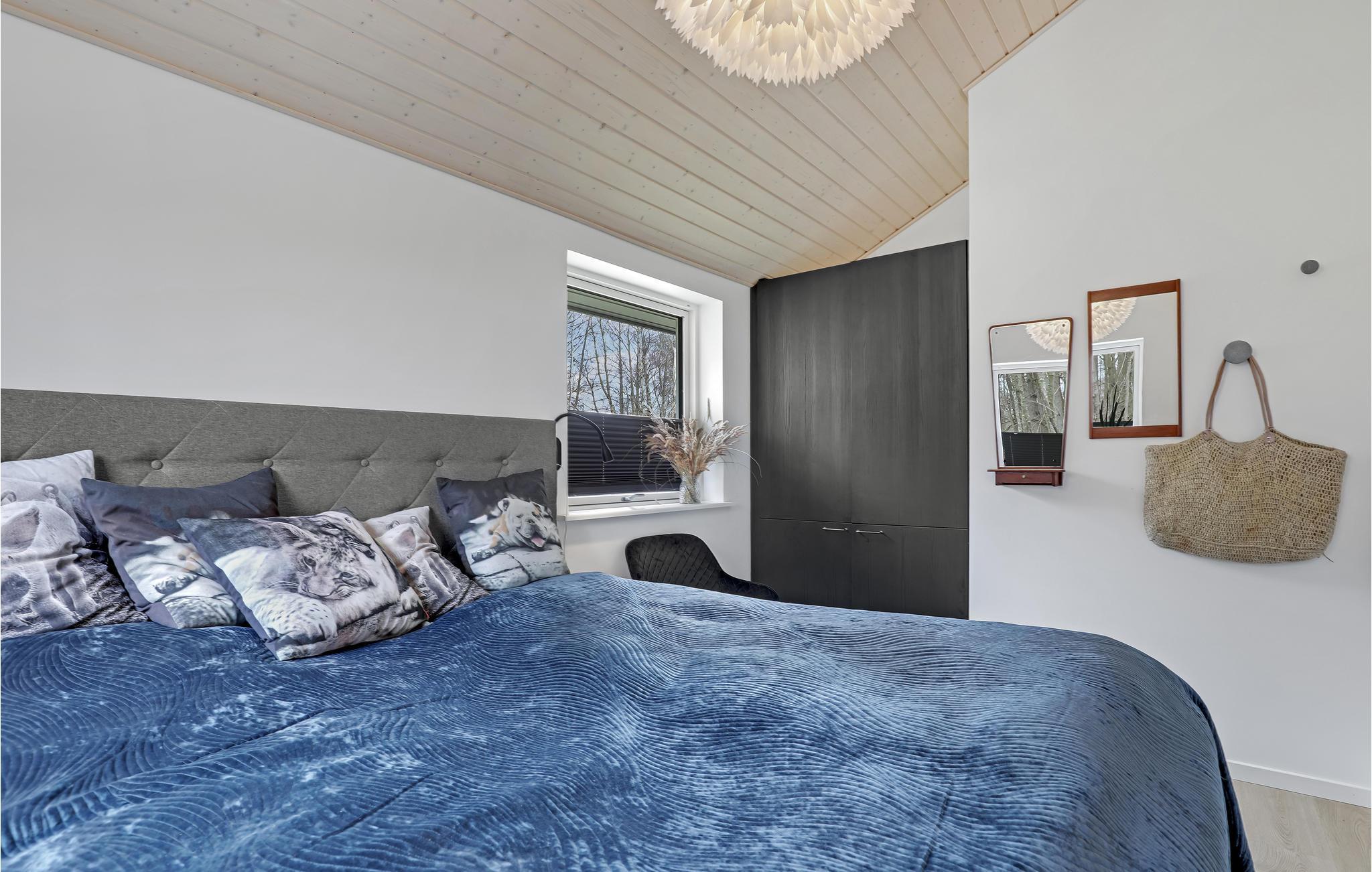 Das Haus empfängt Sie in idealer Lage, um einen schönen Badeurlaub mit viel Zeit am nahegelegenen Strand und Erkundungen der Insel zu verbringen, und auch, wenn Sie Golf lieben, haben Sie hier gute Möglichkeiten. Seine Räume erhalten ihren behaglichen Charme durch viele Holzelemente, eine komfortable Ausstattung und eine wohnlich-moderne Einrichtung, die das Entspannen leicht macht. Der helle Wohnbereich wird schnell zum Zentrum der gemeinsamen Aktivitäten, spielen, kochen und entspannen Sie hier zusammen, großflächige Fenster bieten einen herrlichen Blick auf den Wald.